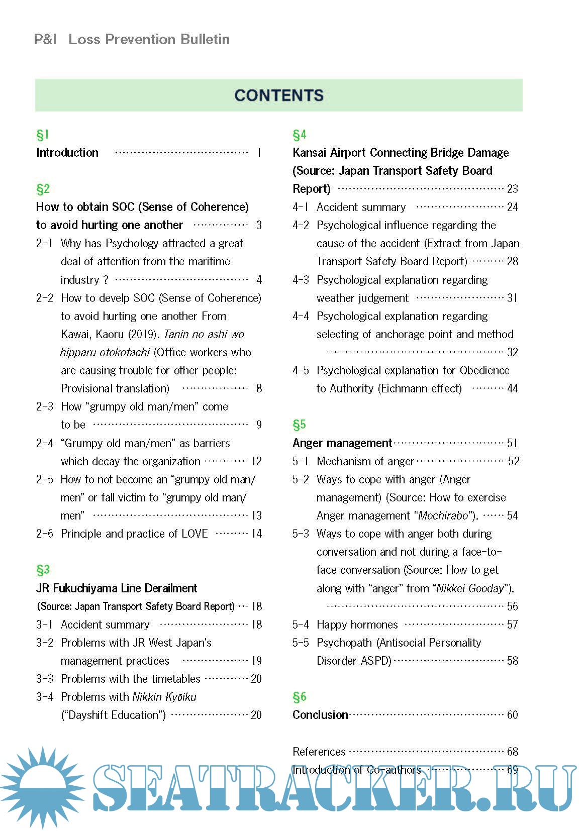 Year: 2020 Language: english Author: Japan P&I Club Genre: Guide Format: PDF Quality: eBook Pages count: 172 Description: Almost 70% of all maritime accidents are said to be caused by human error. Along with damage to harbour facilities brought about by strong gusts of wind and tidal currents during docking work, on examining the root cause, in most cases this was down to inadequate prior inspection and careless mistakes. More than 90% of all maritime accidents are said to be caused by human error. Although it is not possible to eliminate human errors, we consider that having an understanding of the underlying human psychological factors and characteristics may be an effective way to reduce human errors. As a result, we then launched our seminars in 2019 with a focus on psychology. We hope that this will facilitate the reduction of accidents at sea.