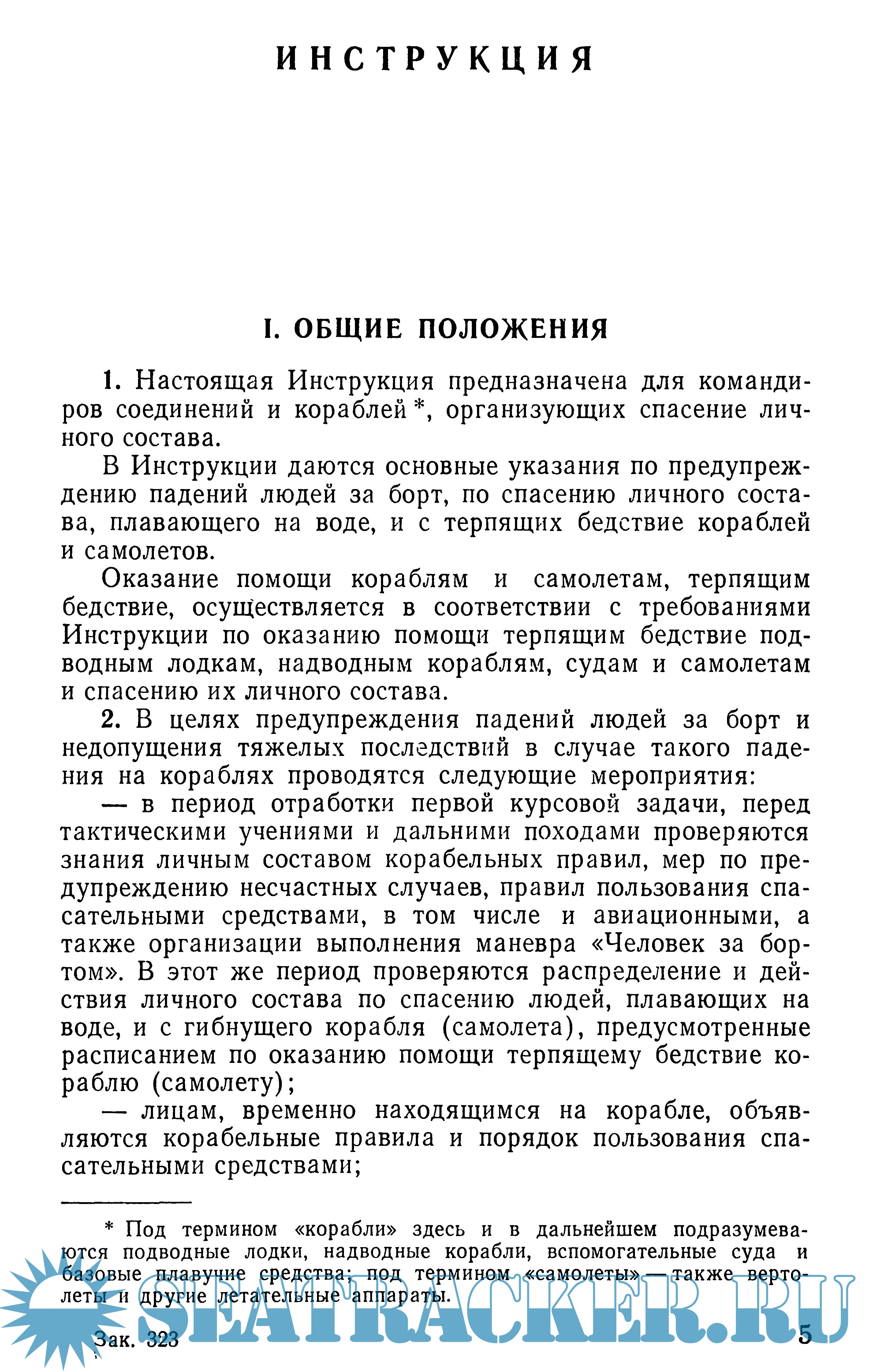Инструкция по спасению личного состава, плавающего на воде, и с терпящих бедствие кораблей и самолетов