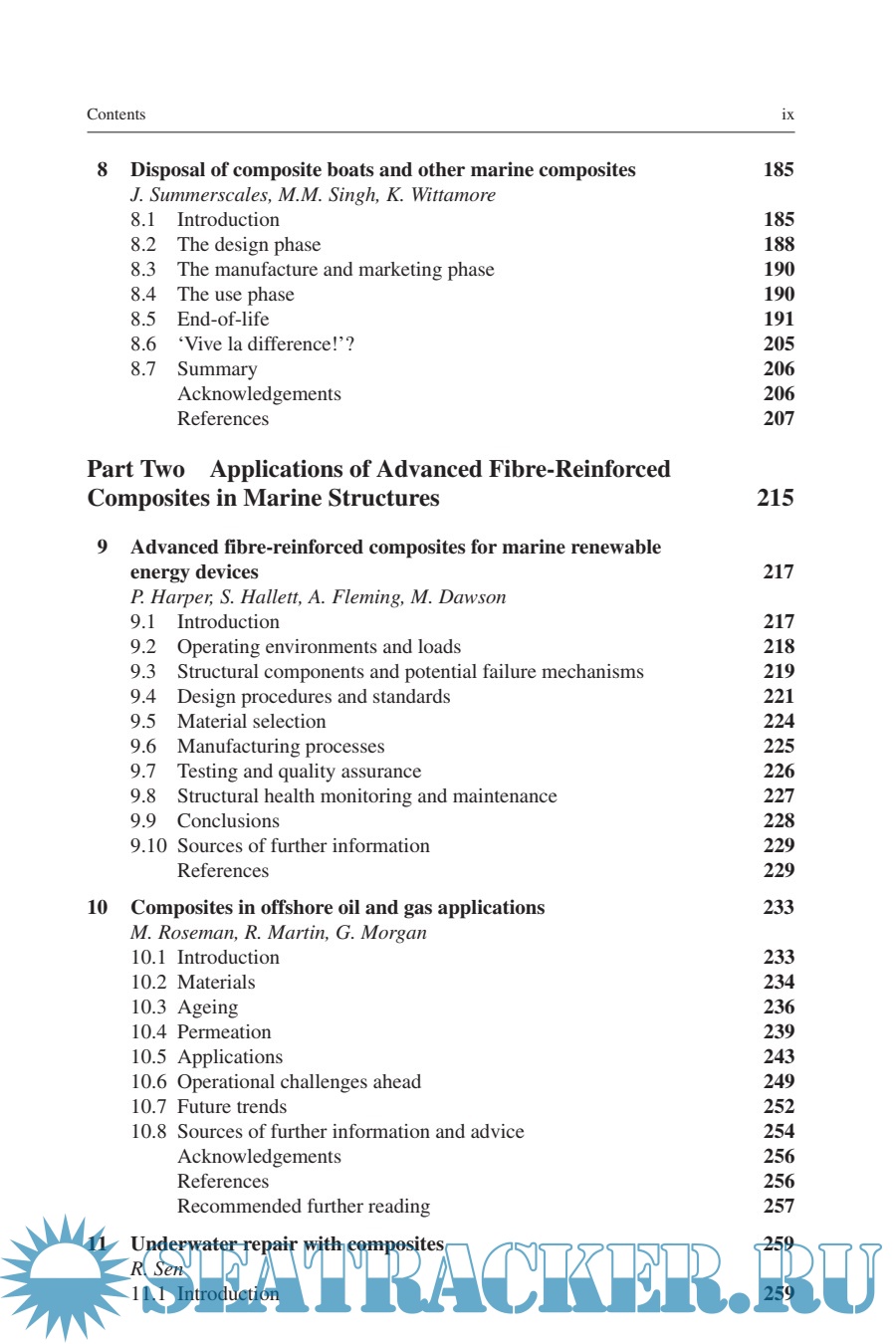 Description: The marine environment presents significant challenges for materials due to the potential for corrosion by salt water, extreme pressures when deeply submerged and high stresses arising from variable weather. Well-designed fibre-reinforced composites can perform effectively in the marine environment and are lightweight alternatives to metal components and more durable than wood. Marine Applications of Advanced Fibre-Reinforced Composites examines the technology, application and environmental considerations in choosing a fibre-reinforced composite system for use in marine structures.