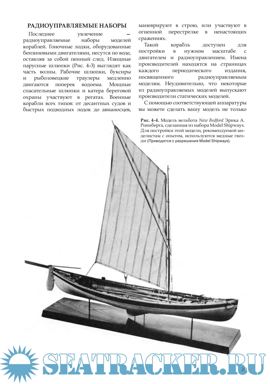 Год выпуска: 1988 Язык: русский Автор: перевод Гаврин А. Жанр: Руководство Издательство: Чуланчик на верфи Формат: PDF Качество: Отсканированные страницы Количество страниц: 286 Описание: Эта книга о том как строить модели судов. Кроме того, здесь сказано, где найти информацию, которая поможет вам строить модели проще, быстрее и лучше, и описание уже успешно опробованных методов работы, которыми вы тоже можете воспользоваться. Надеюсь этот труд будет для многих учебником, справочником для большинства и обзором для остальных. Я мог бы сказать, что написал эту книгу, чтобы доставить удовольствие друзьям, кто обращался ко мне за помощью. Но я предпочитаю, сказать, что я собрал, каталогизировал и разъяснил в подробностях свою работу и опыт других. Я сделал это для всех своих друзей. Чтобы найти унцию золота, нужно перелопатить тонны руды. Эта книга — предложение нескольких таких унций из моих рудников. Мои сокровища отобраны с пыльных полок с нужными книгами вкупе с несчетными годами трудного, творческого опыта. Мое сокровище дороже золота и отражает колебания конъюнктуры рынка моделей судов, как для декоративного предмета для демонстрации, так и для ее значения в целом.