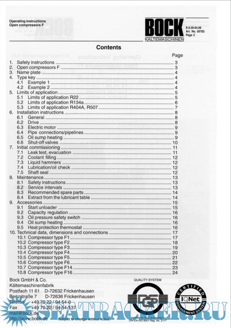 The following operating instructions describe the compressors in the F series in the standard version manufactured by Bock.