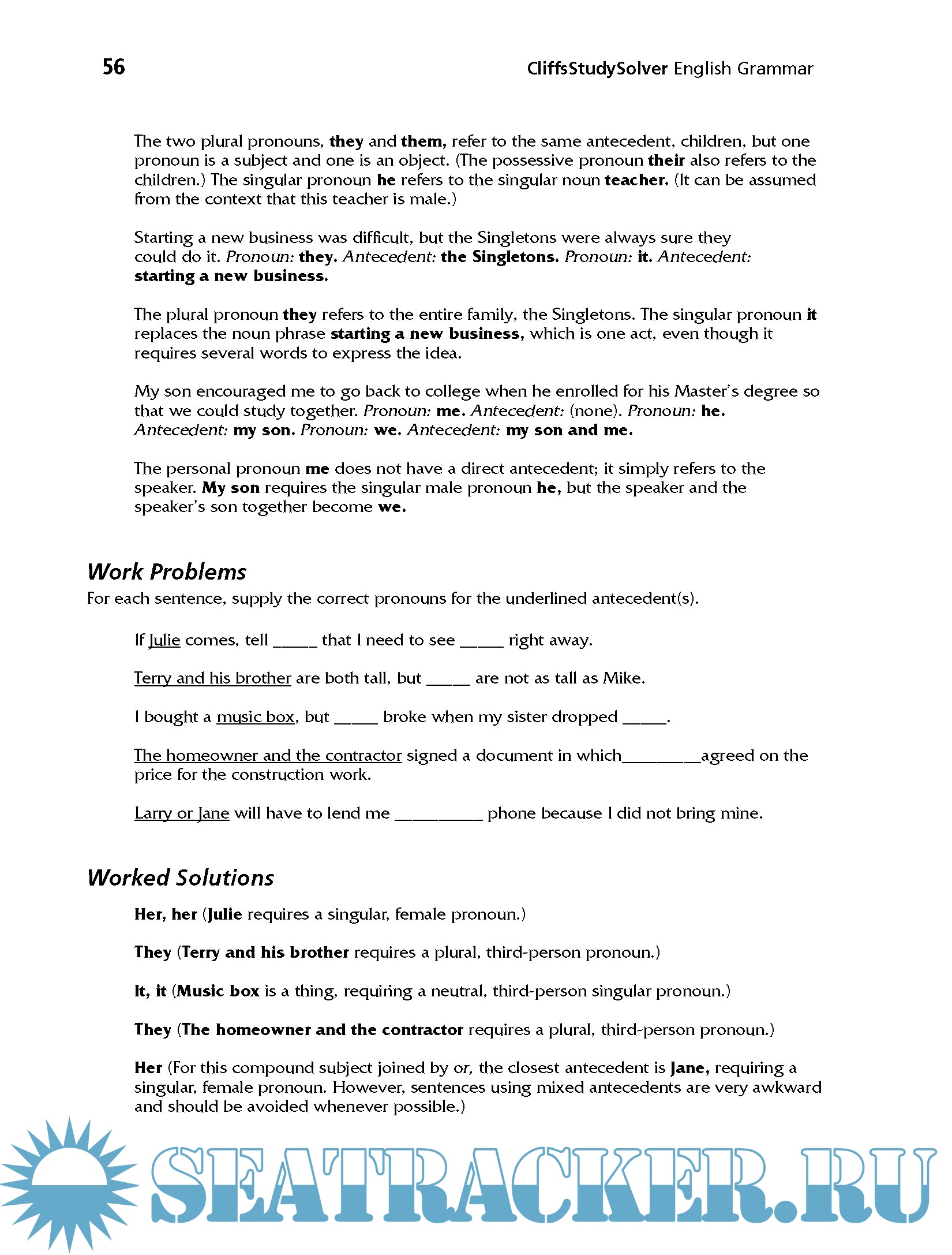 Description: The Cliffs Study Solver workbooks combine 20 percent review material with 80 percent practice problems (and the answers!) to help make your lessons stick.Cliffs Study Solver English Grammar is for students who want to reinforce their knowledge with a learn-by-doing approach. Inside, you'll get the practice you need to learn English grammar with problem-solving tools such as * Clear, concise reviews of every topic * Practice problems in every chapter - with explanations and solutions * A diagnostic pretest to assess your current skills * A full-length exam that adapts to your skill level A glossary, a list of commonly misused words, and punctuation and capitalization rules can help you communicate effectively. This workbook also covers the parts of speech, verbs, and active and passive voices. Explore other aspects of English including * Subjects and predicates * Adjective and adverbial phrases * Pronouns * Noun-verb agreement * Prepositions * Frequently encountered sentence problems * Using numerals Practice makes perfect - and whether you're taking lessons or teaching yourself, CliffsStudySolver guides can help you make the grade.Author Jeffrey Coghill is a medial librarian at East Carolina University in Greenville, NC; Stacy Magedanz is currently a reference librarian at California State University in San Bernardino. Both have M.A. degrees in English.