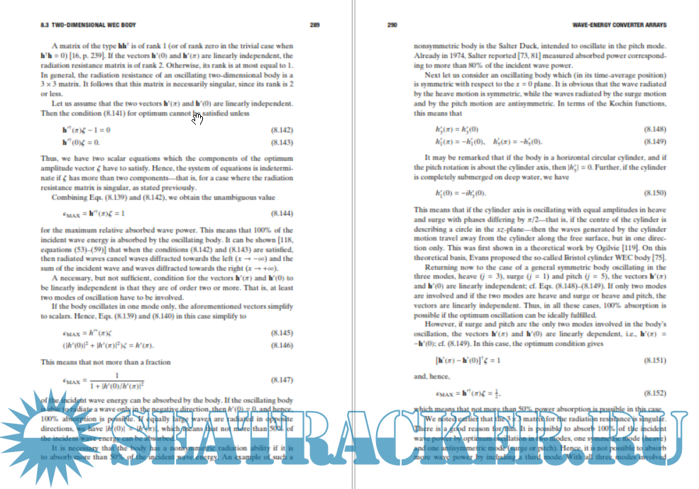 Year: 2020 Language: english Author: Johannes Falnes, Adi Kurniawan Genre: Research papers Publisher: Cambridge University Press Edition: 2nd ISBN: 1108481663,9781108481663 Format: PDF Quality: eBook Pages count: 319 Description: Understand the interaction between ocean waves and oscillating systems with this useful new edition. With a focus on linear analysis of low-amplitude waves, you are provided with a thorough understanding of wave interactions, presented to be easily accessible to non-specialist readers. Topics covered include the background mathematics of oscillations, gravity waves on water, the dynamics of wave-body interactions, and the absorption of wave energy by oscillating bodies and oscillating water columns. Featuring new content throughout, including three new chapters on oscillating-body wave energy converters, oscillating water columns and other types of wave energy converters, and wave energy converter arrays, this book is an excellent resource for students, researchers, and engineers who are new to the subject of wave energy conversion, as well as those with more experience.