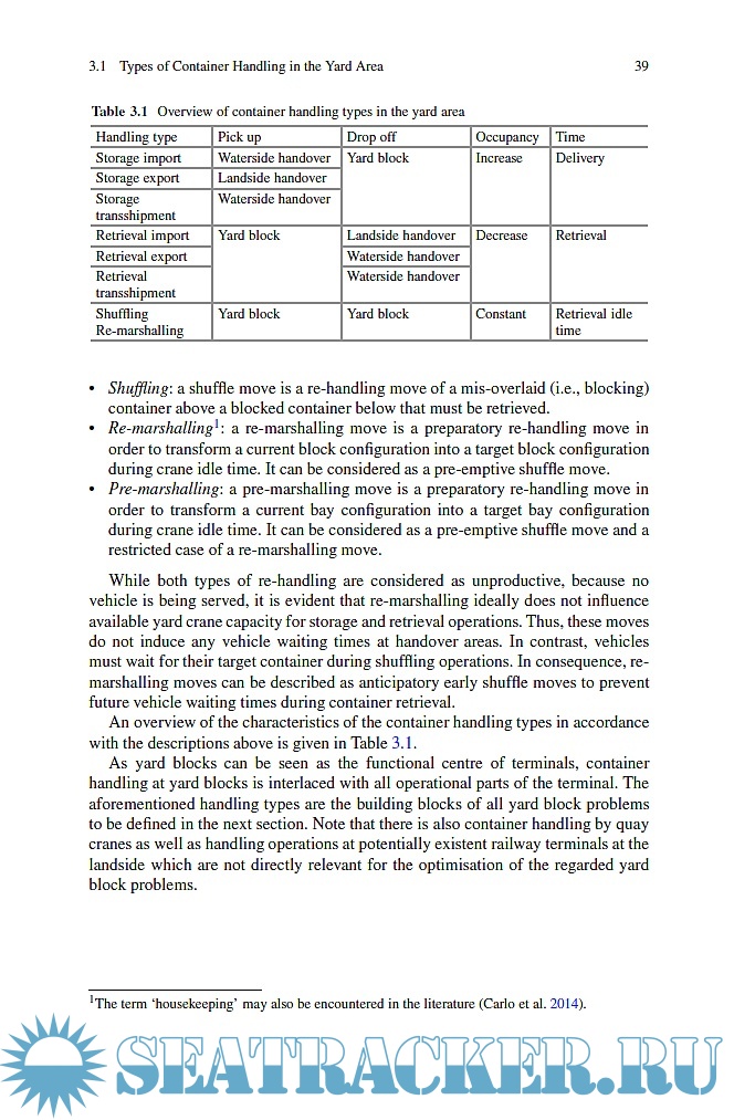Description: The yard block of a container terminal is a central and critical joint, because it has to sort and synchronize container flows between vessels and internal road transport. The very structure of the block causes containers are stacked on top of each other, with only the topmost container directly accessible by a yard crane, in a First In Last Out (FILO) logic. This book describes a new and integrative approach to container handling in yard blocks to optimise productivity, by minimising re-handling operations (multiple container movements before final picking and loading). It provides strategies and practical solutions for scholars, experts and operators to terminal planning and operations. Uncertainity upon container arrival information are examined on the basis of simulation and statistical evaluation.