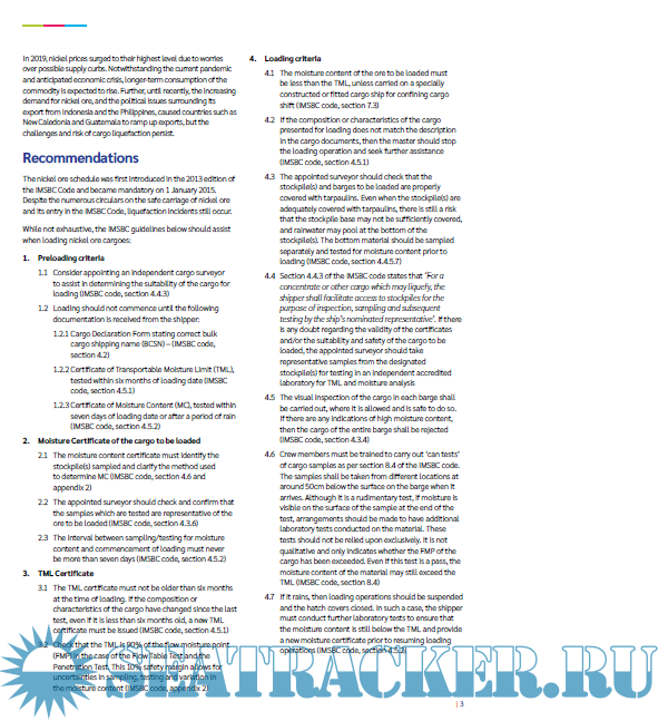 Description: Guidelines and best practices for carriage of Nickle Ore by sea