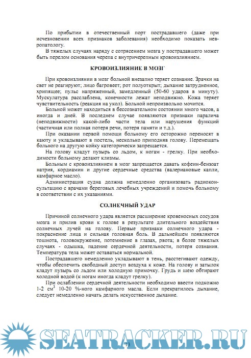 Год выпуска: 1993 Язык: русский Автор: В,Буров, Н.Орехов и др. Жанр: Пособие Издательство: Государственная Морская Академия им. Макарова Серия: Учебное пособие Формат: PDF Качество: Изначально компьютерное (eBook) Количество страниц: 120 Описание: В пособии приводится описание наиболее часто встречающихся заболеваний на судах (симптоматика, диагностика и методы лечения с учетом отсутствия на судне медицинского работника), а также освещаются вопросы ведения медицинской документации и укомплектования аптечек. Пособие рассчитано на командный состав судов.