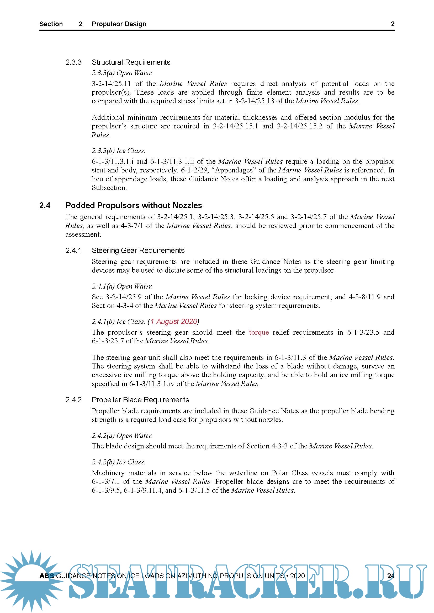 Description: These Guidance Notes (GN) offer special guidance for determining design ice loads on the propulsor(s) for ice-going vessels equipped with azimuthing main propulsion units. Podded electrically-driven units and mechanically-driven azimuthing thruster types are addressed.