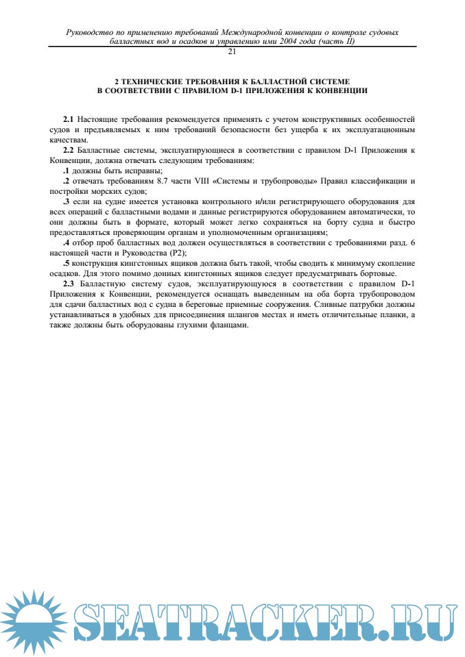 - Руководства по применению требований Международной конвенции о контроле судовых балластных вод и осадков и управлению ими 2004 года;- Guidelines on application of the requirements of International Convention for the Control and Management of Ships Ballast Water and Sediments, 2004.