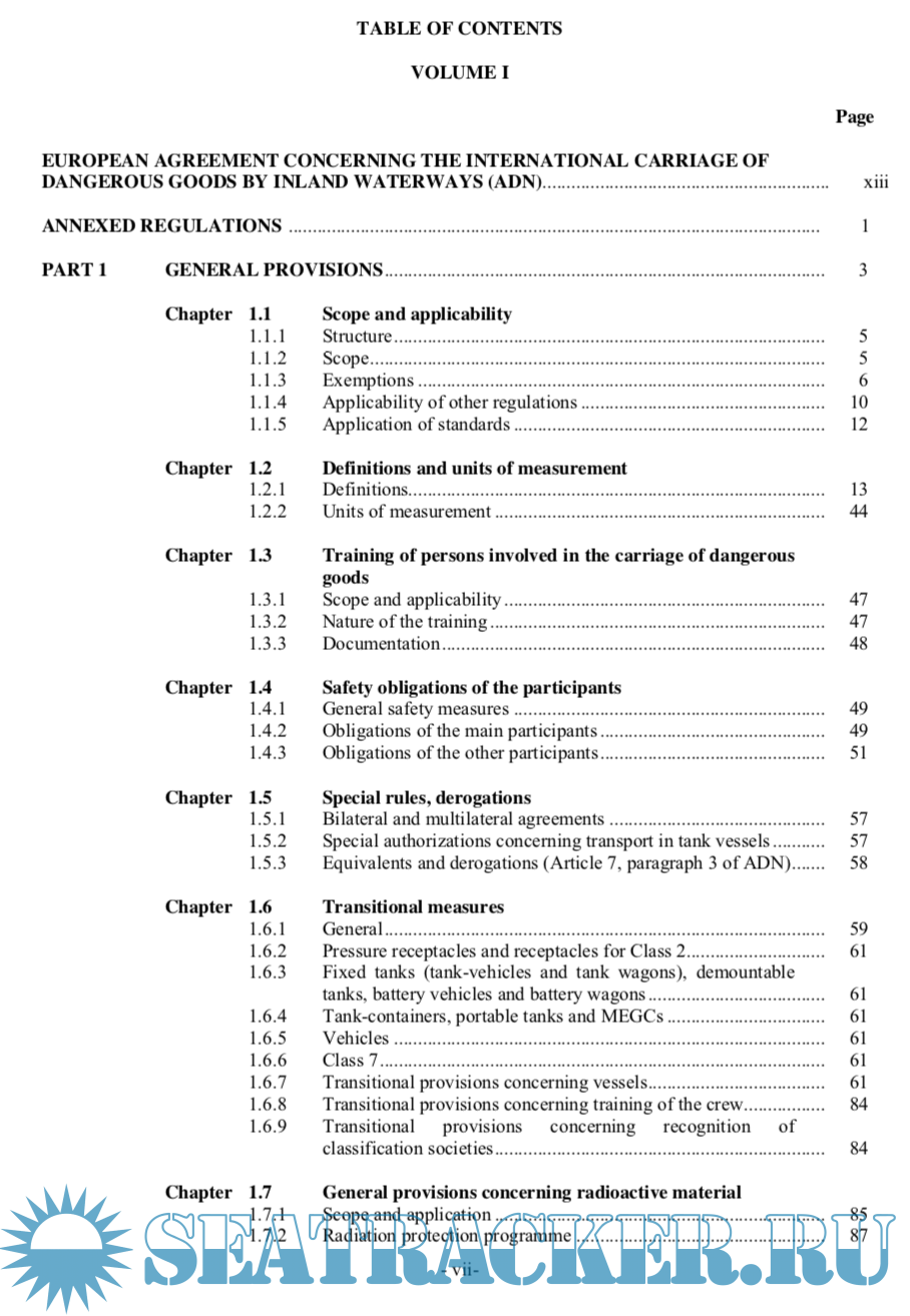 European Agreement concerning the International Carriage of Dangerous Goods by Inland Waterways (ADN) Vol I