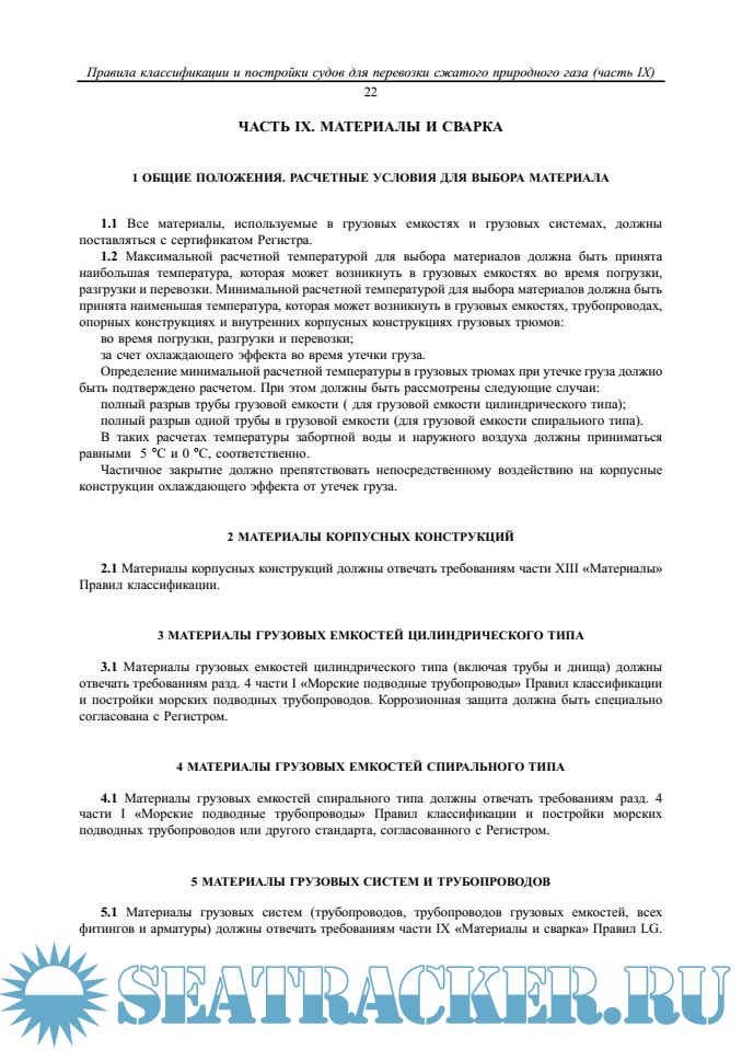Правила устанавливают требования, специфические для судов, перевозящих сжатые природные газы, и дополняют Правила классификации и постройки морских судов и Правила по оборудованию морских судов Российского морского регистра судоходства.
