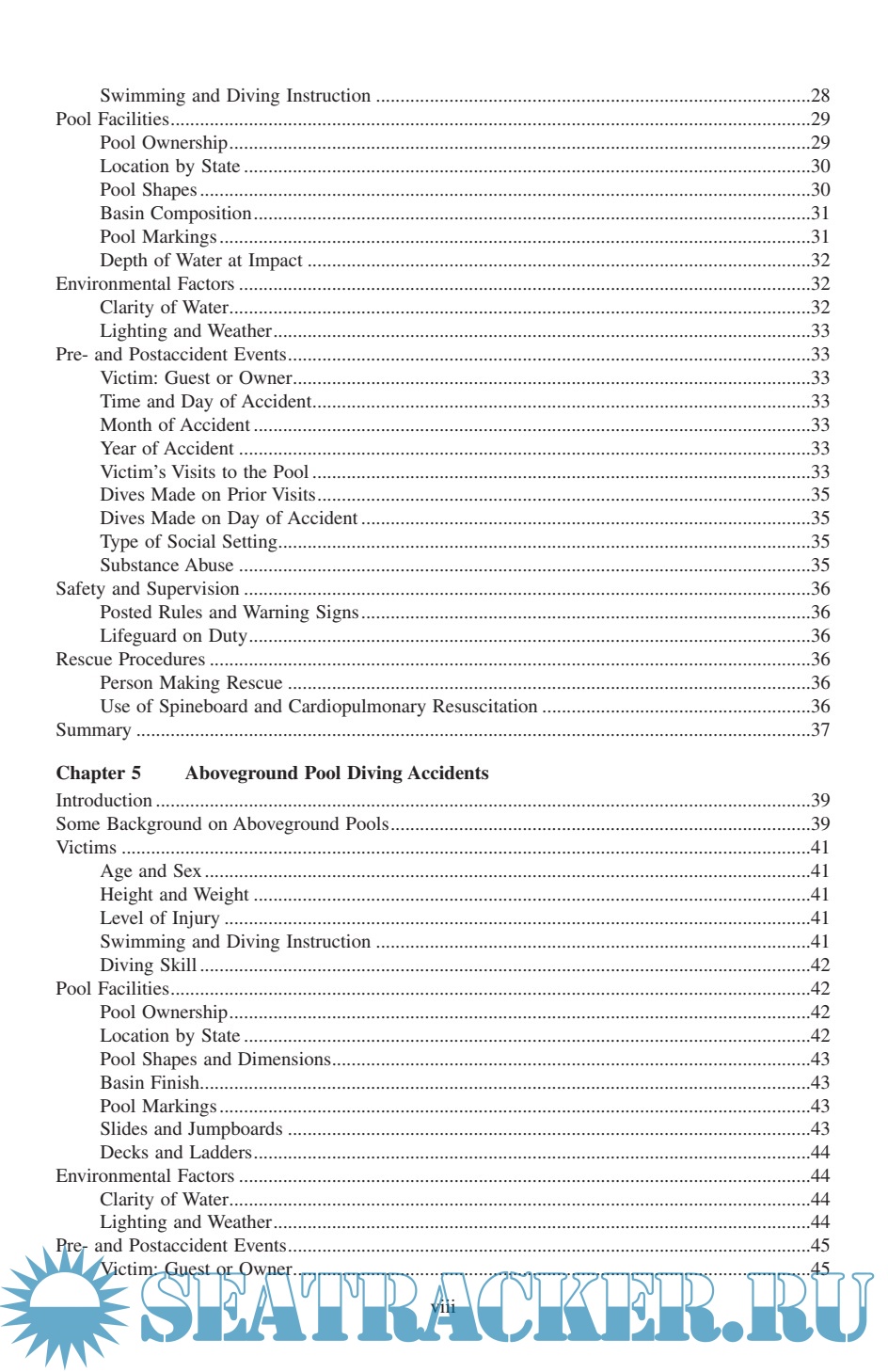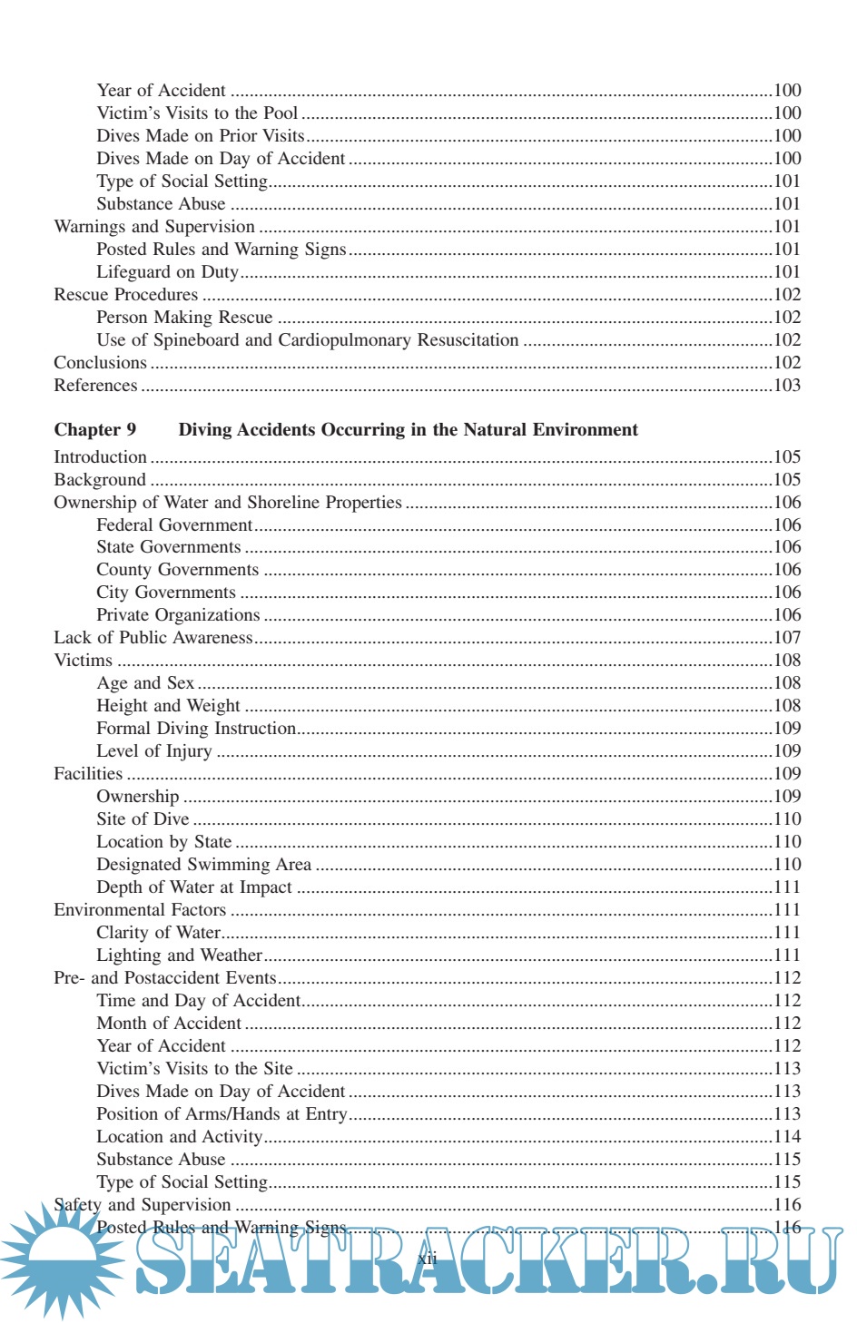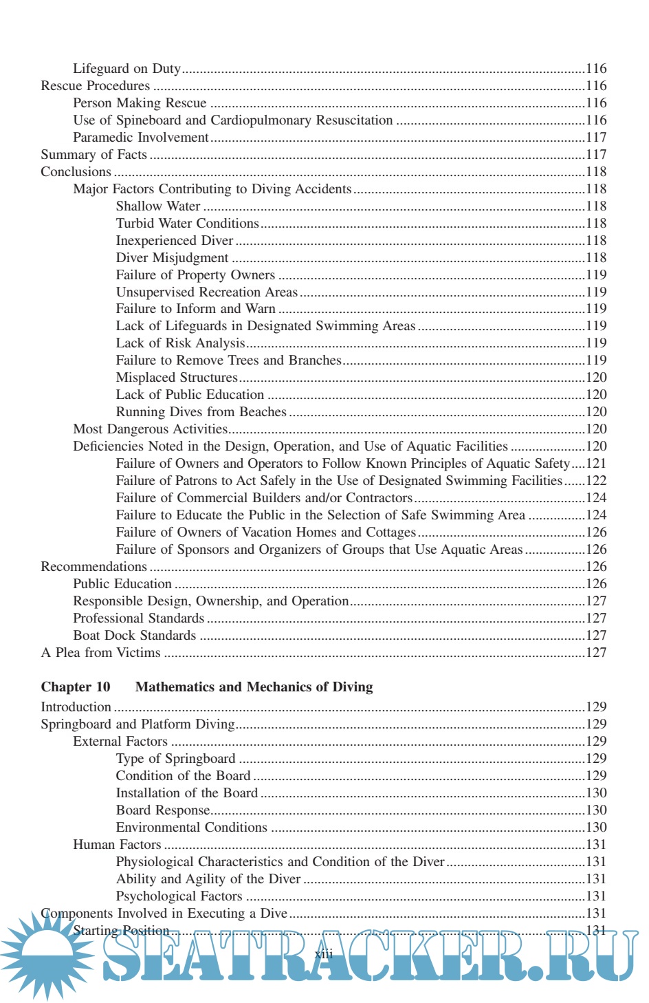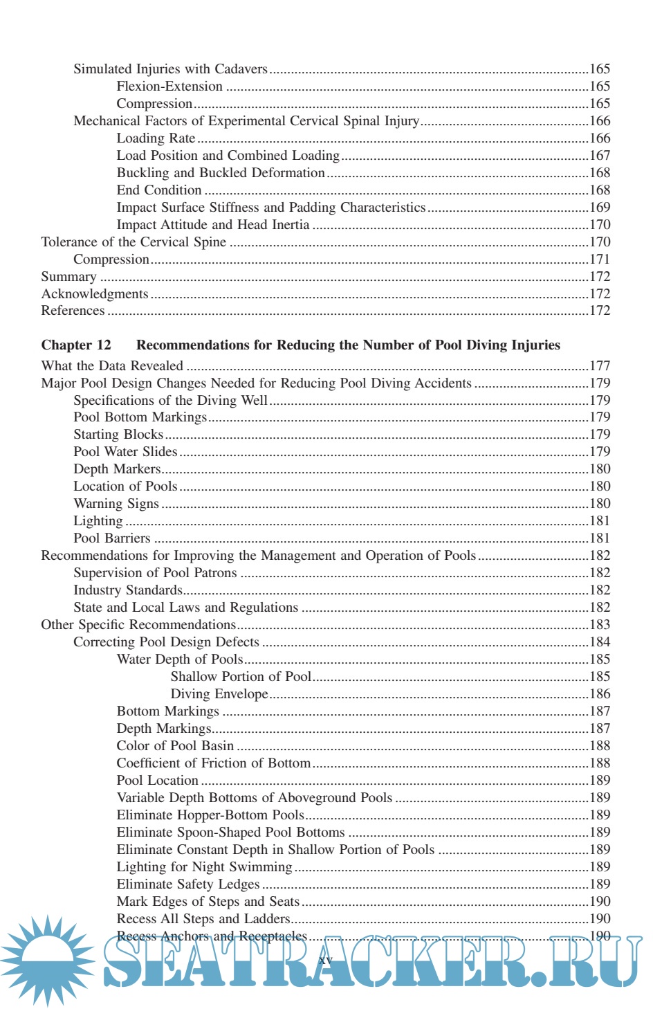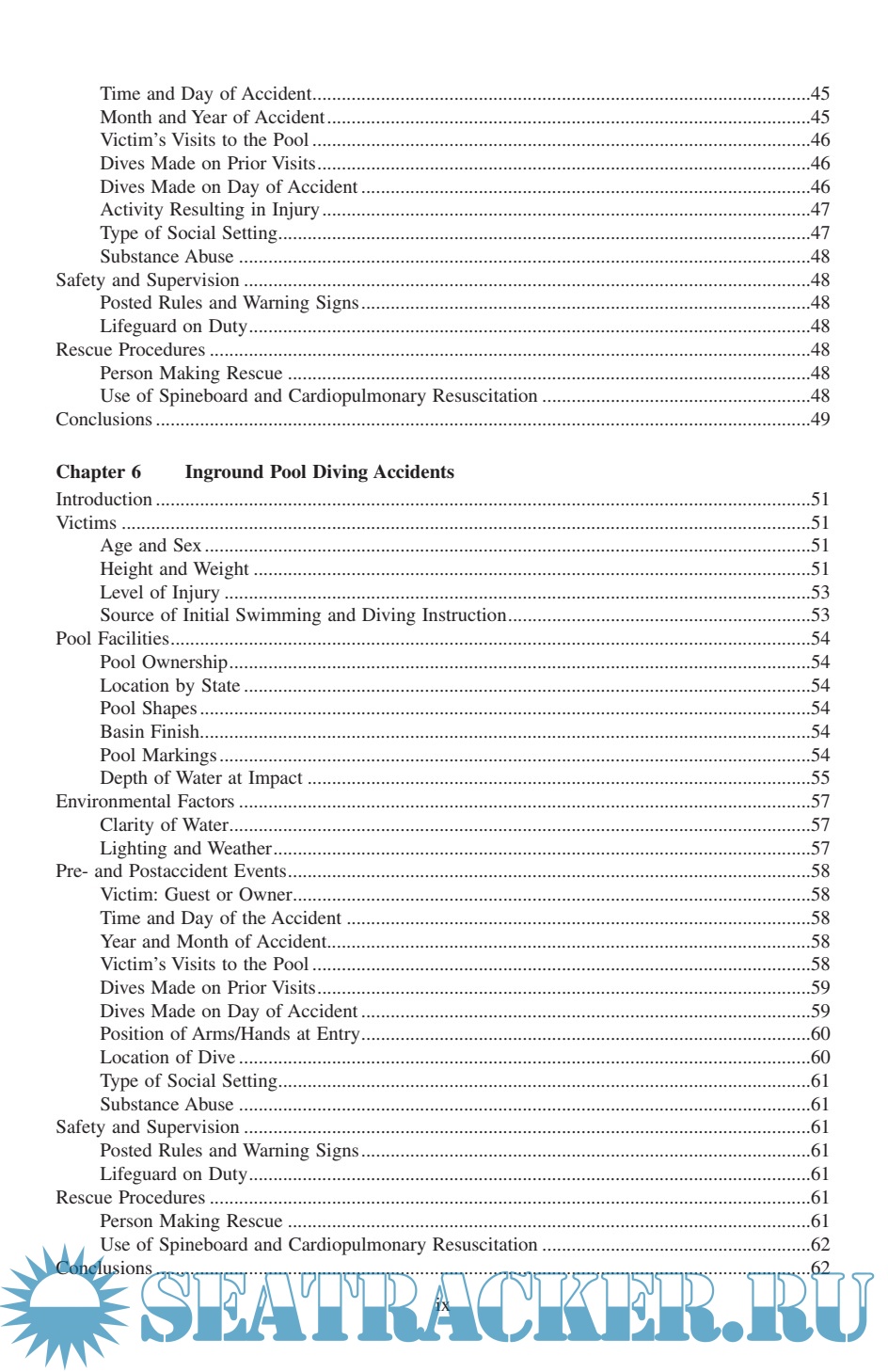 Description: Diving Injuries: Research Findings and Recommendations for Reducing Catastrophic Injuries represents the most comprehensive study ever done on the problem of spinal cord injuries resulting from diving into water. ng injuries. In it, Dr. Gabrielsen, a renowned expert on the interpretation and presentation of diving-related testimony, discusses injuries sustained in swimming pools, lakes, rivers, and oceans; the laws, standards, and regulations for swimming pool design; and the cost of medical and rehabilitative care for spinal cord injury victims. The book provides a greater understanding of diving safety from all perspectives and is an indispensable reference guide to the safety conscious.