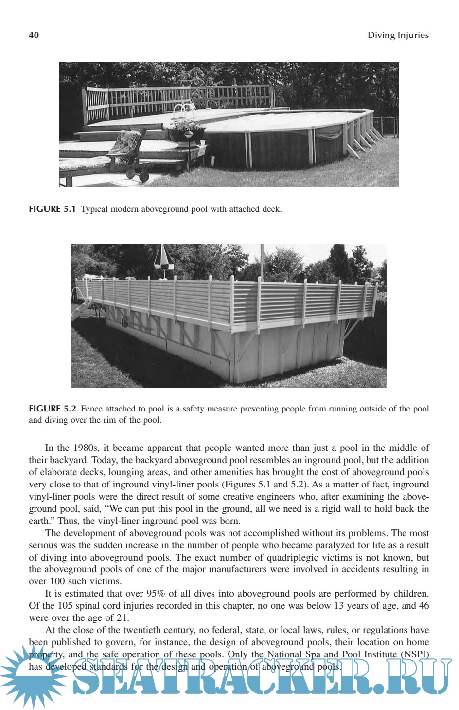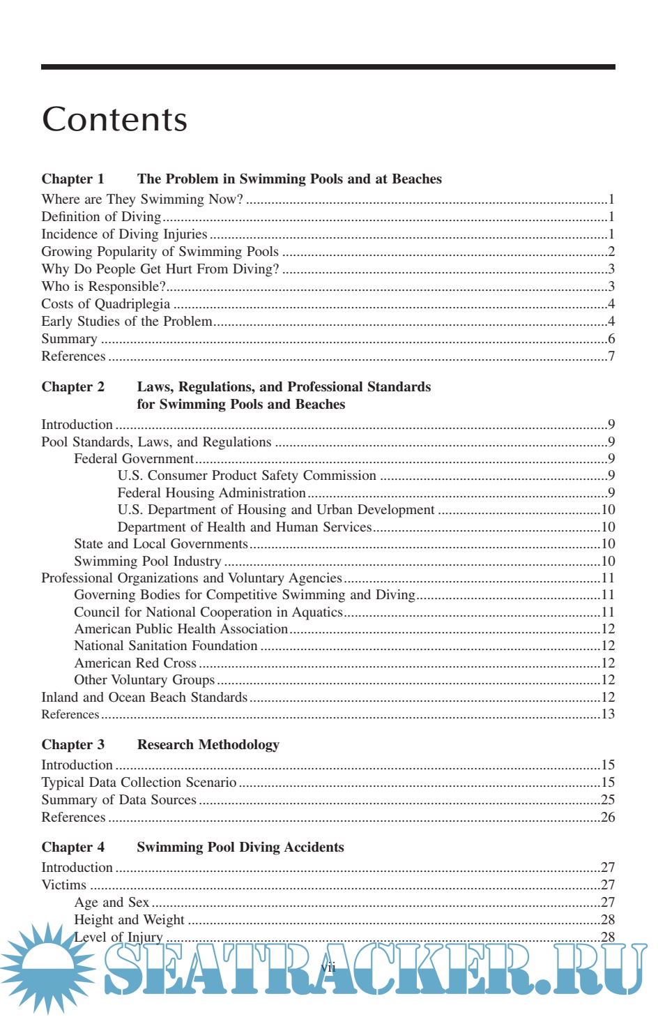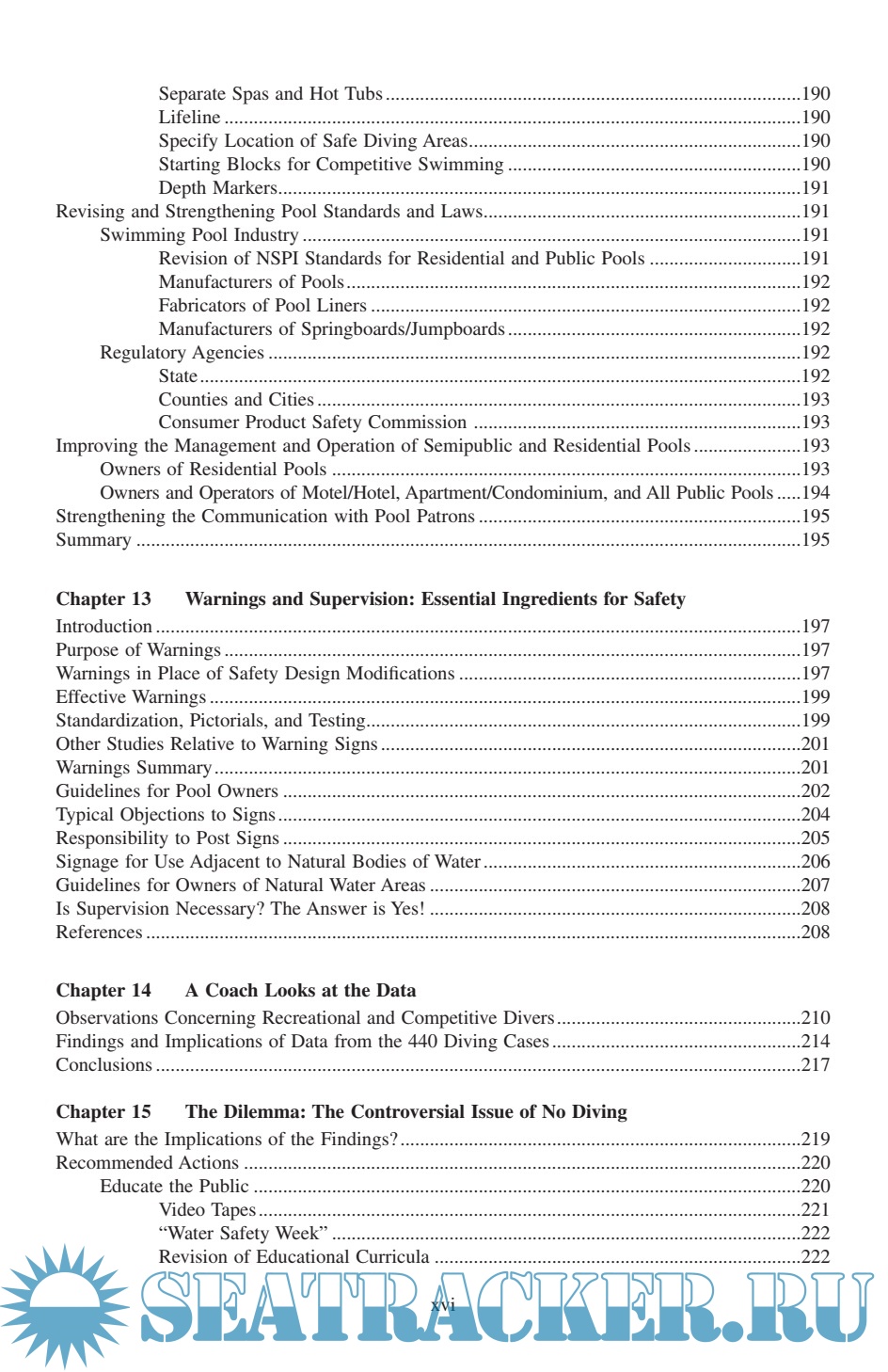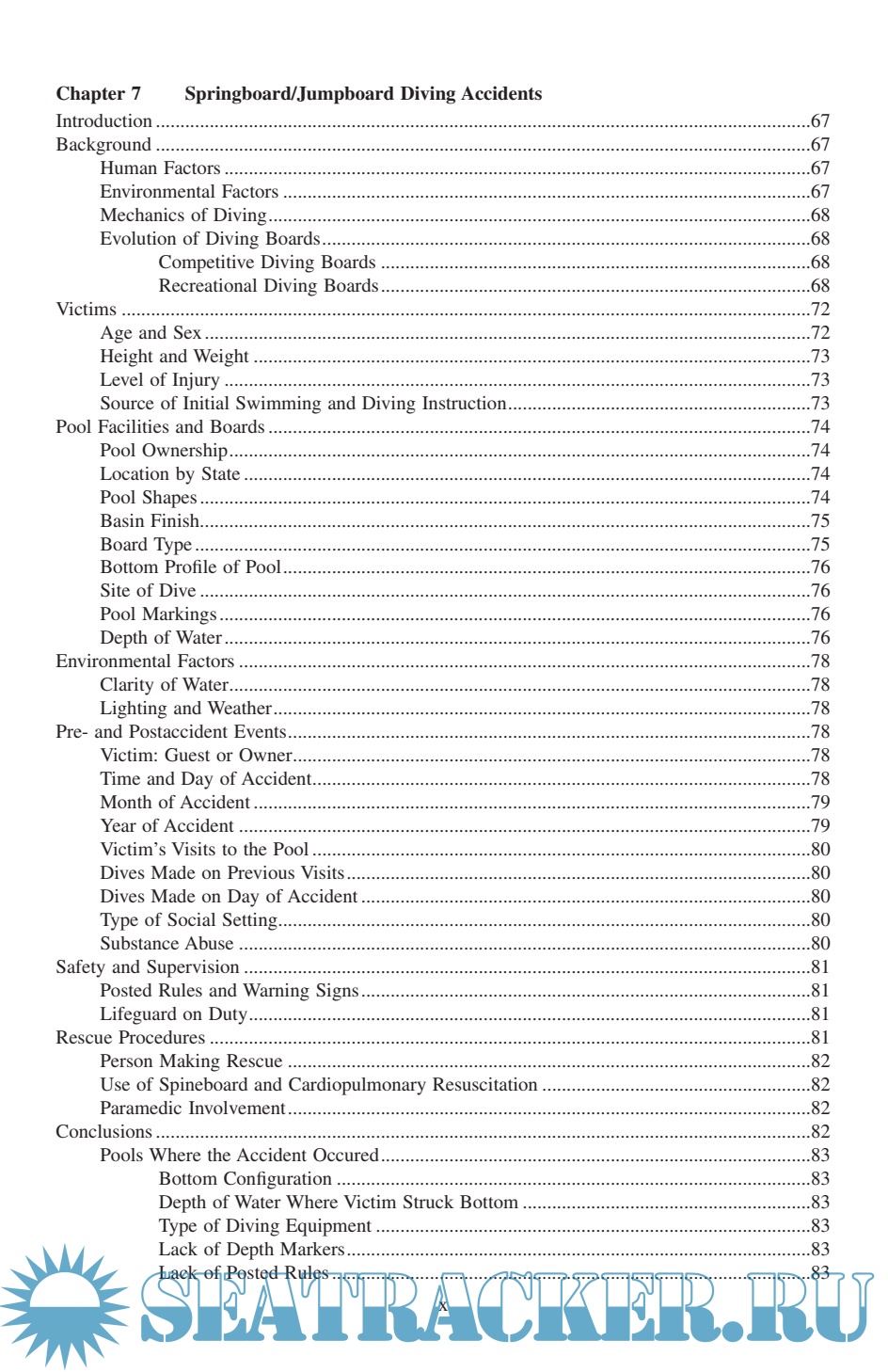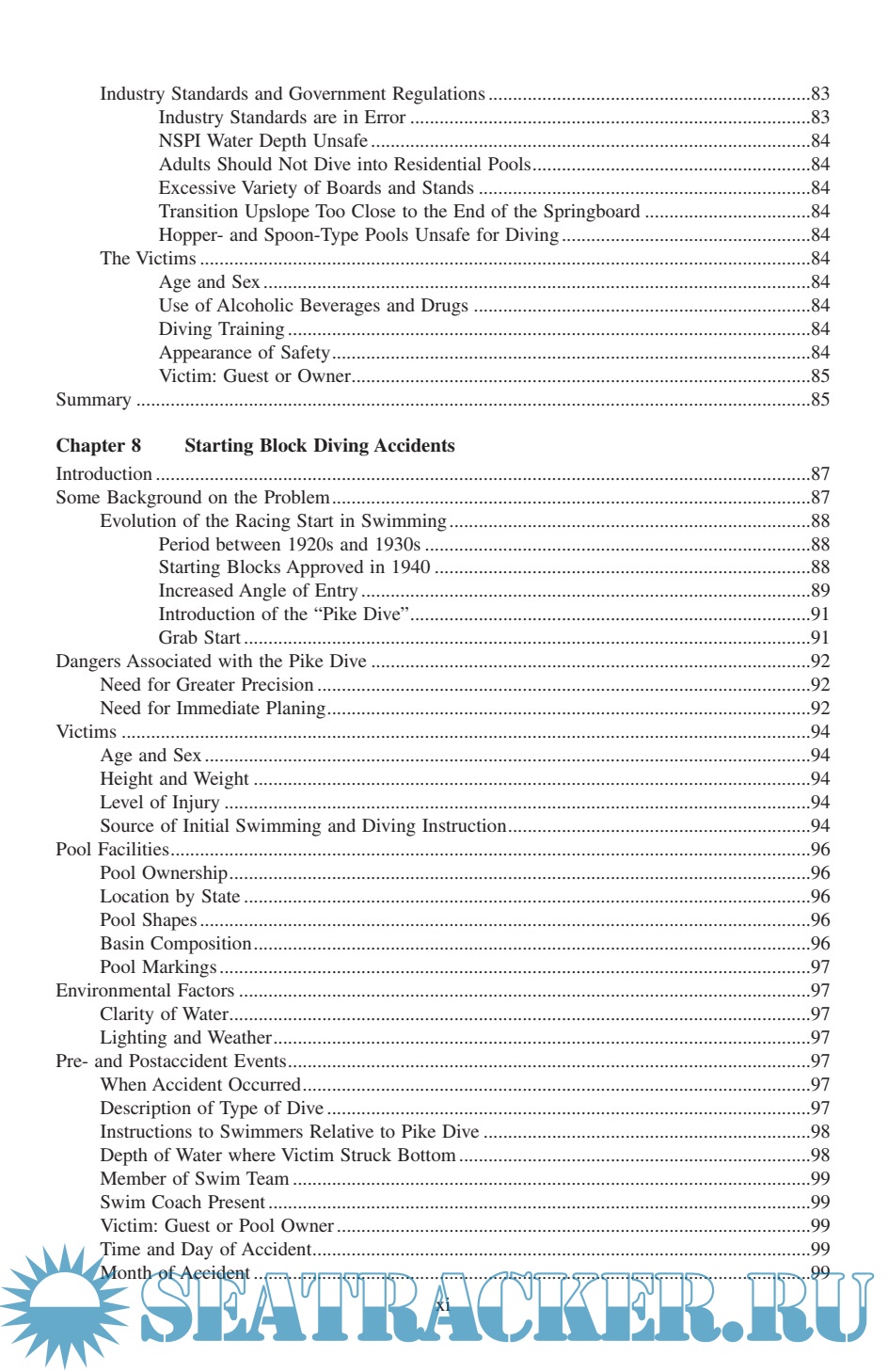 Description: Diving Injuries: Research Findings and Recommendations for Reducing Catastrophic Injuries represents the most comprehensive study ever done on the problem of spinal cord injuries resulting from diving into water. ng injuries. In it, Dr. Gabrielsen, a renowned expert on the interpretation and presentation of diving-related testimony, discusses injuries sustained in swimming pools, lakes, rivers, and oceans; the laws, standards, and regulations for swimming pool design; and the cost of medical and rehabilitative care for spinal cord injury victims. The book provides a greater understanding of diving safety from all perspectives and is an indispensable reference guide to the safety conscious.