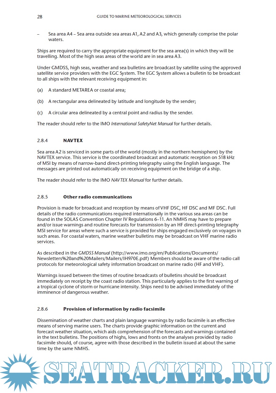 The purpose of this Guide is to complement the Manual by describing the requirements for each service, explaining the rationale for the agreed methods of providing services, and giving guidance on how to set up and maintain marine meteorological services.