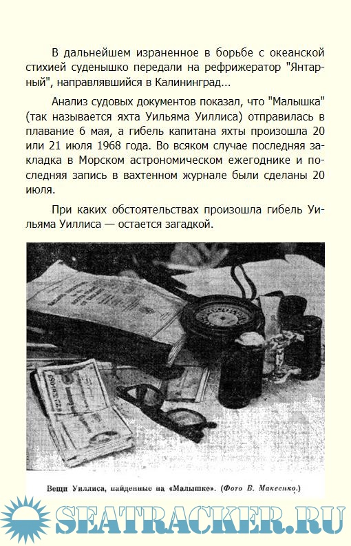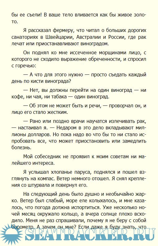 Год выпуска: 1969 Язык: русский Автор: Уиллис У. Жанр: История Издательство: Гидрометеоиздат Формат: FB2 Качество: Изначально компьютерное (eBook) Количество страниц: 300 Описание: Два беспримерных в истории мореплавания одиночных рейса совершил американский моряк Уильям Уиллис. В 1954 году он отправился от гористых берегов Перу к островам Полинезии на бальсовом плоту "Семь сестричек". Через три с половиной месяца, преодолев почти семь тысяч миль, он достиг островов Самоа. Другому человеку такого плавания, насыщенного драматическими приключениями, хватило бы на всю жизнь, но только не Уиллису. Через девять лет после первой своей одиссеи он предпринимает еще более грандиозное плавание — от берегов Перу к Австралии — на металлическом плоту, не без юмора названном "Возраст не помеха". За двести четыре ходовых дня Уиллис покрыл одиннадцать тысяч миль в пустынных просторах величайшего океана нашей планеты. Рассказ об этом необычайном плавании, об удивительном мужестве и несгибаемой воле мореплавателя читатель найдет в предлагаемой книге. Книга представит интерес для самого широкого круга читателей.