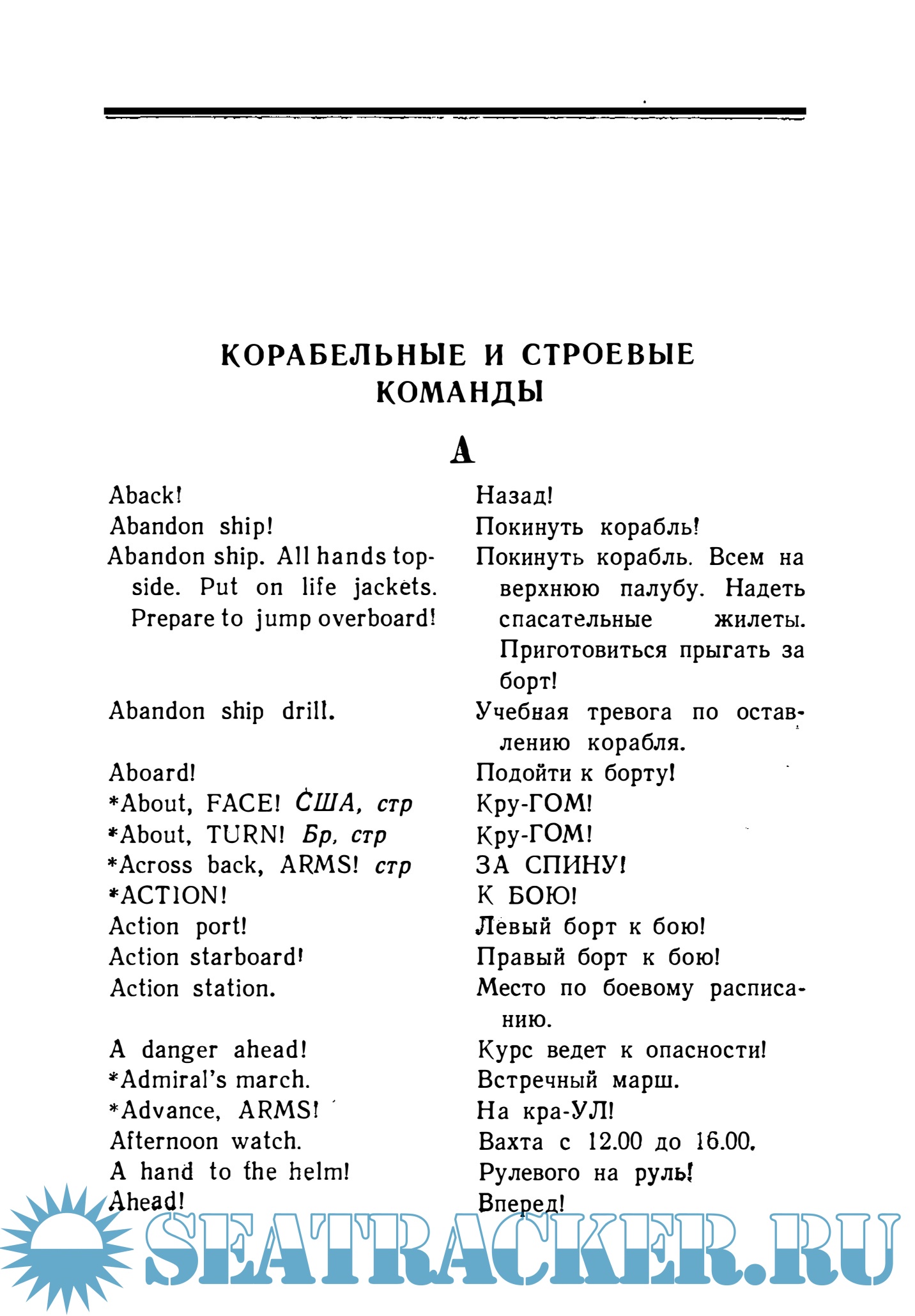 Звездочка (*) перед английской командой в англо-русском словаре показывает, что данная команда полностью соответствует русской уставной команде.