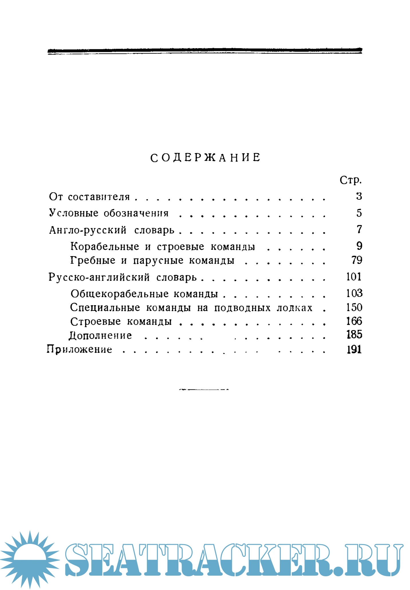 Русско-английский словарь включает команды, содержащиеся в соответствующих приложениях к Корабельному уставу и Строевом уставе Вооруженных Сил Союза ССР. Этот словарь состоит из трех разделов: