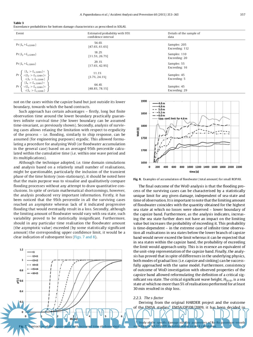 Year: 2013 Language: english Author: Apostolos Papanikolaou et alli Genre: Research papers Publisher: Elsevier Format: PDF Quality: eBook Pages count: 14 Description: The new probabilistic damaged stability regulations for dry cargo and passenger ships (SOLAS 2009), which entered into force on January 1, 2009, represent a major step forward in achieving an improved safety standard through the rationalisation and harmonization of damaged stability requirements. There are, however, serious concerns regarding the adopted formulation for the calculation of the survival probability of passenger ships, particularly for ROPAX and large cruise vessels. The present paper outlines the objectives, the methodology of work and main results of the EU-funded FP7 project GOALDS (Goal Based Damaged Stability, 2009–2012), which aims to address the above shortcomings by state-of-the-art scientific methods and by formulating a rational, goal-based regulatory framework, properly accounting for the damage stability properties of passenger ships and the risk of people onboard.