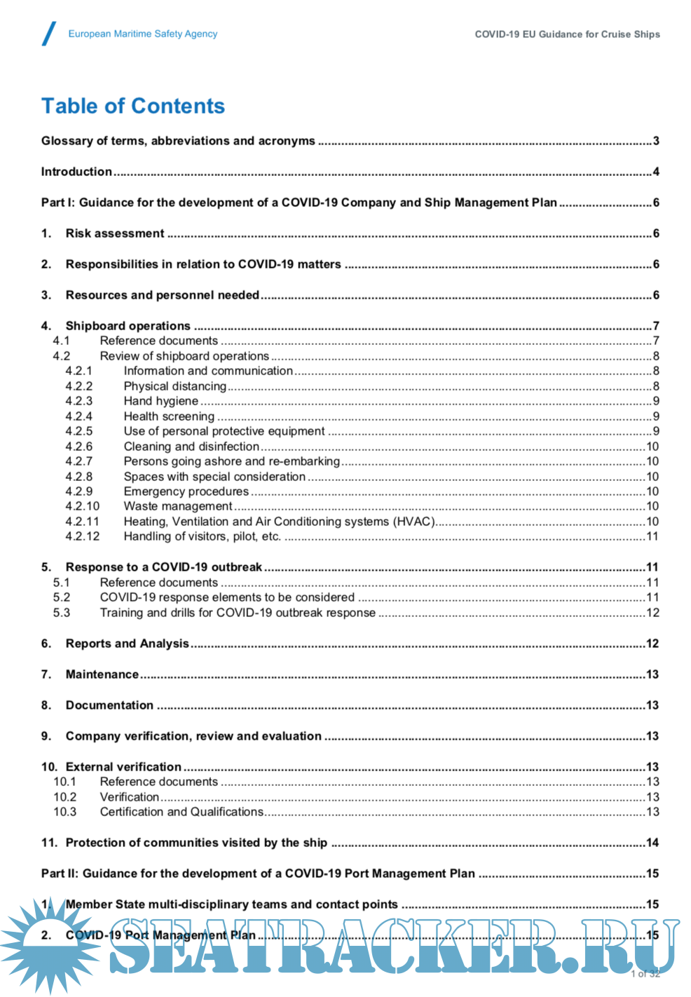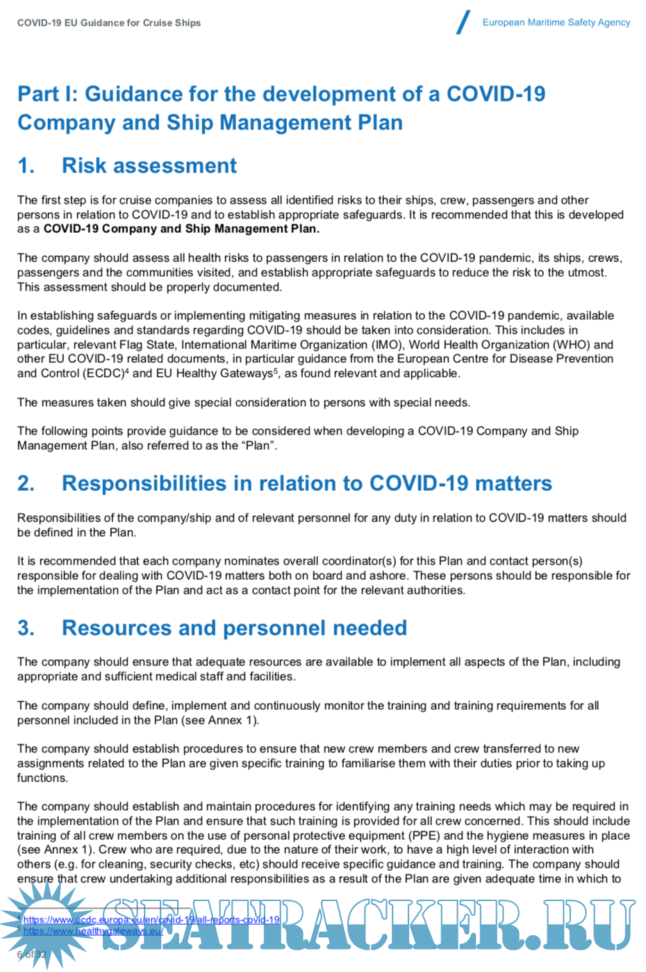 The objective of this Guidance is to facilitate a safe re-start of operations of cruise ships in the EU, by recommending minimum measures expected to be implemented by all those concerned, while maintaining general safety and security standards. This Guidance is meant for EU/EEA flagged ships engaged in international voyages and for ships calling at an EU/EEA port irrespective of flag.
