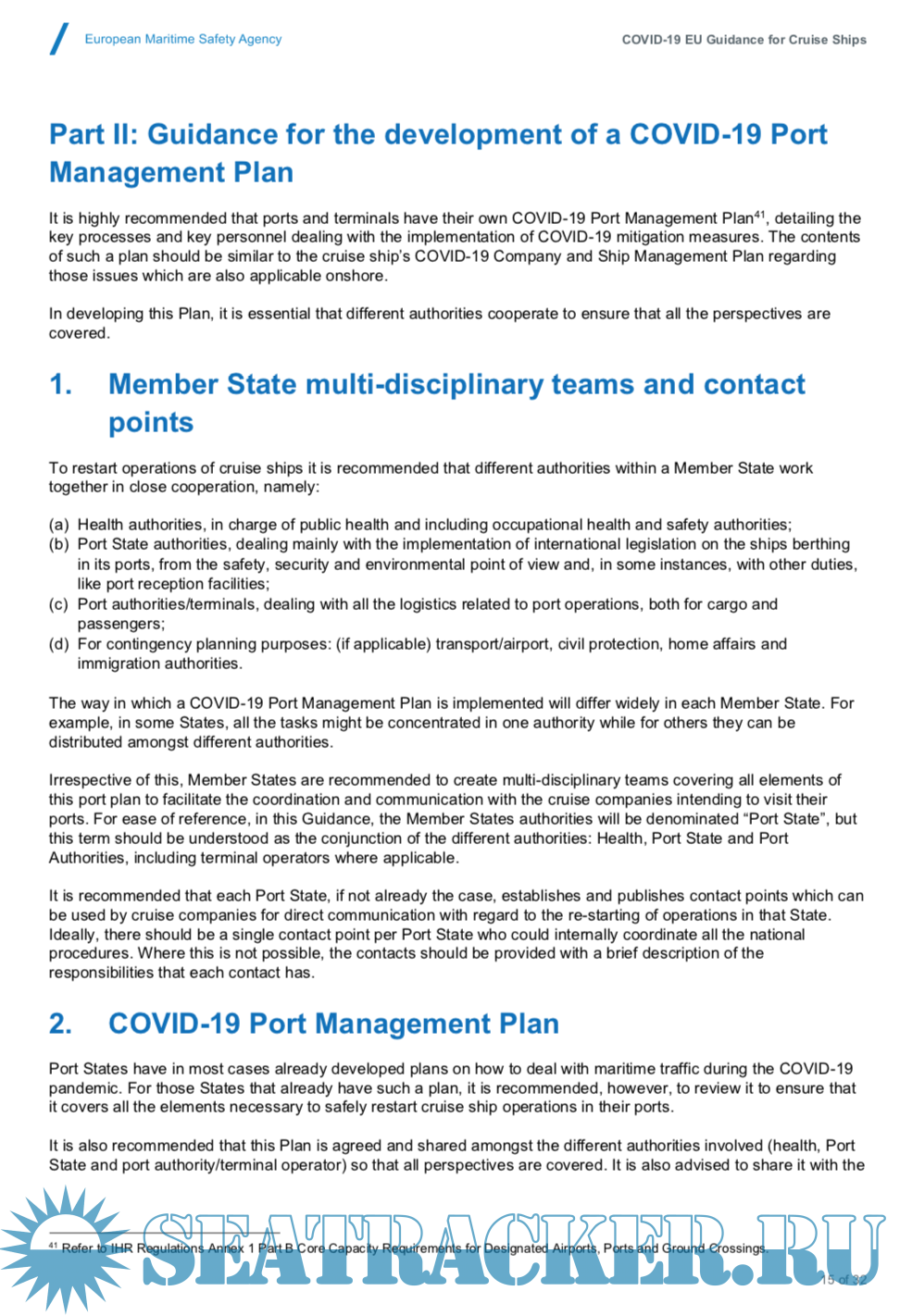 The second part recommends the development of a COVID-19 Port Management Plan by each Member State/port/terminal receiving cruise ships, for which a minimum set of measures are also suggested.