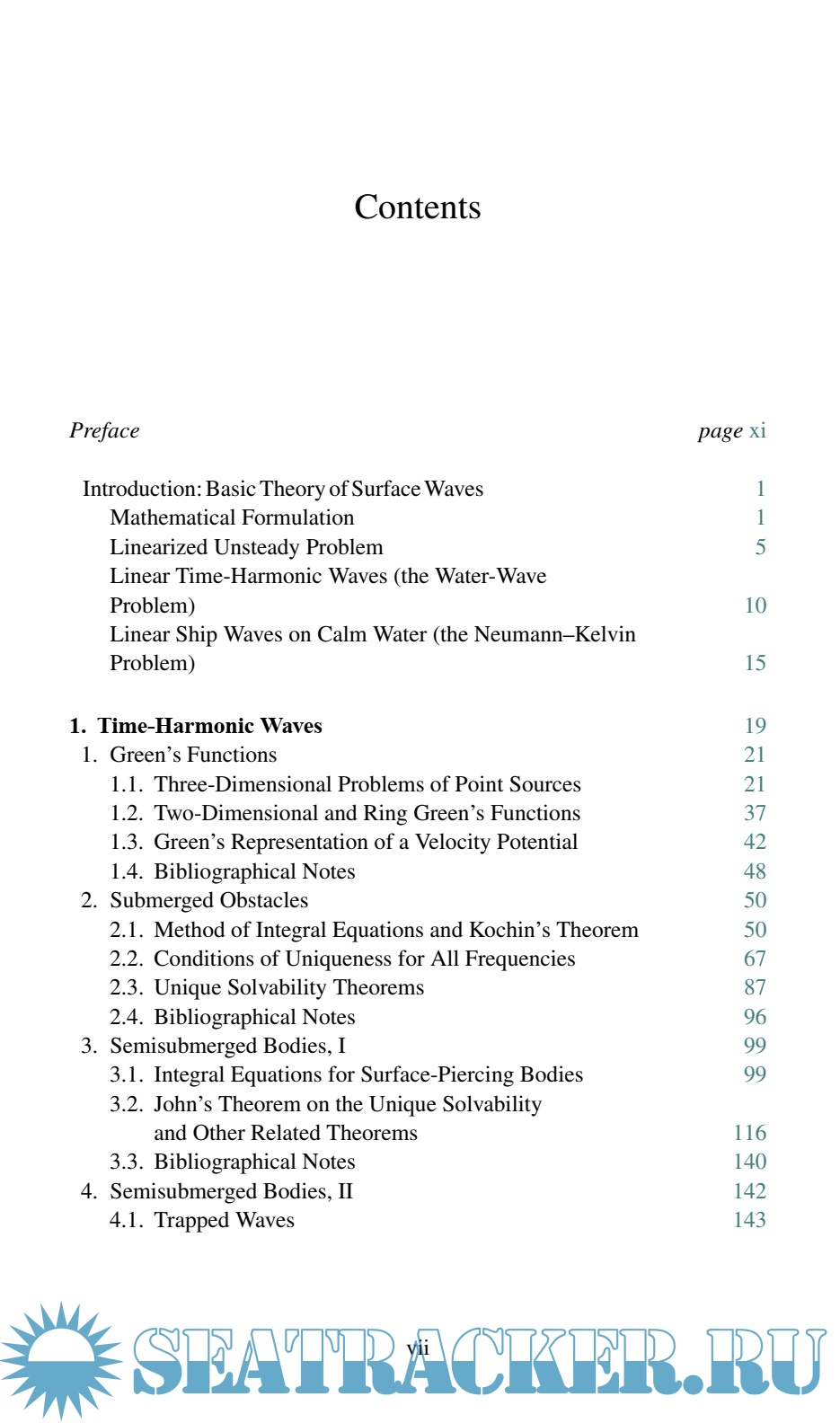 Year: 2002 Language: english Author: Kuznetsov N., Maz'ya V., Vainberg B. Genre: Handbook Publisher: Cambridge University Press Edition: 1st ISBN: 0521808537 Format: PDF Quality: Scanned pages Pages count: 533 Description: This book gives a self-contained and up-to-date account of mathematical results in the linear theory of water waves. The study of waves has many applications, including the prediction of behavior of floating bodies (ships, submarines, tension-leg platforms etc.), the calculation of wave-making resistance in naval architecture, and the description of wave patterns over bottom topography in geophysical hydrodynamics. The first section deals with time-harmonic waves. Three linear boundary value problems serve as the approximate mathematical models for these types of water waves. The next section uses a plethora of mathematical techniques in the investigation of these three problems. The techniques used in the book include integral equations based on Green's functions, various inequalities between the kinetic and potential energy and integral identities which are indispensable for proving the uniqueness theorems. The so-called inverse procedure is applied to constructing examples of non-uniqueness, usually referred to as 'trapped nodes.'