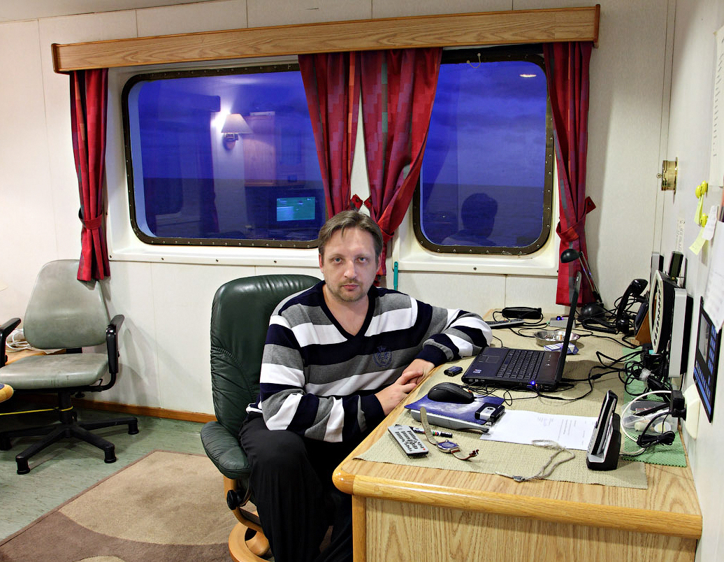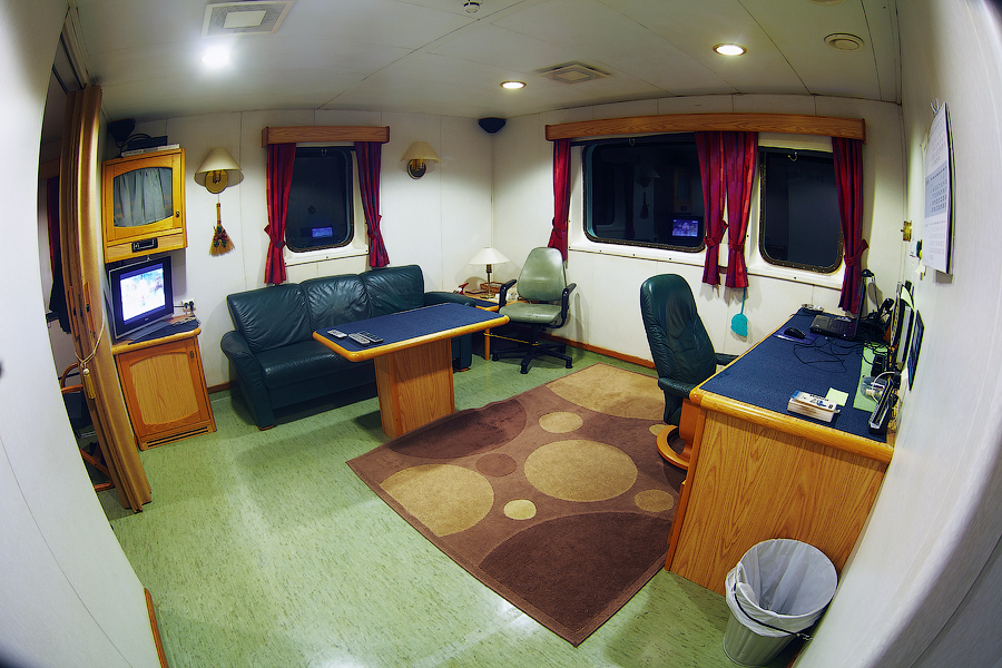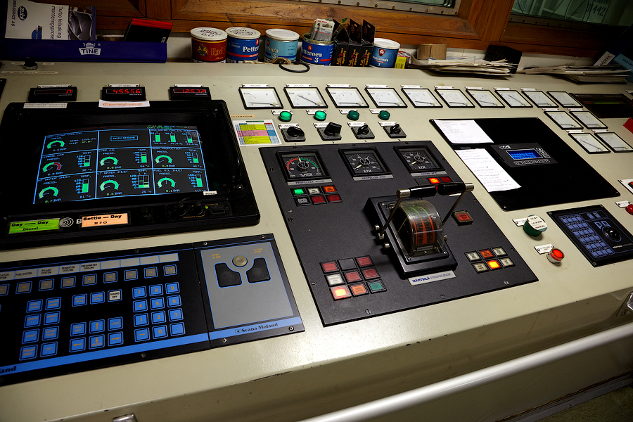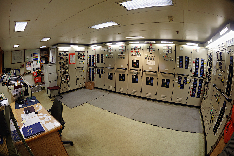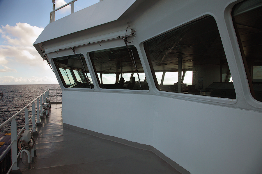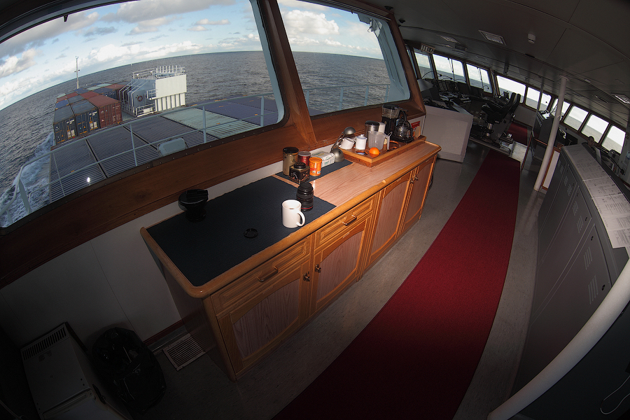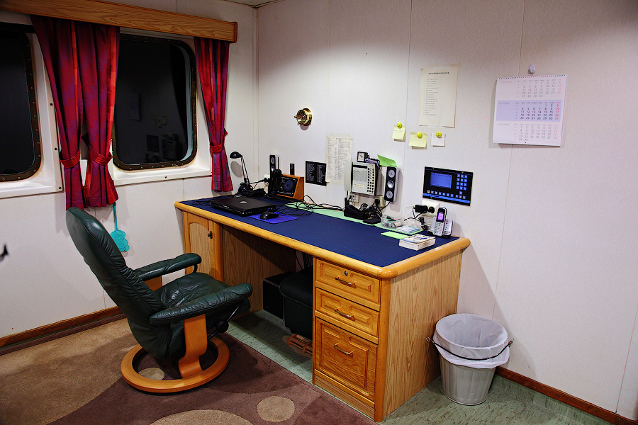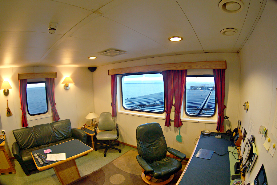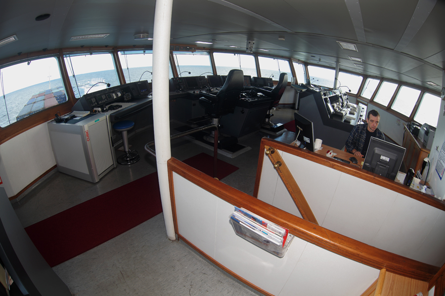 Во время съемки мне приходилось включать дополнительное освещение,чтобы у вас была возможность хоть что-то разглядеть. А на самом деле,капитанский мостик ночью выглядит словно новогодняя елка-в кромешной темноте сверкает разноцветными лампочками навигационное оборудование
