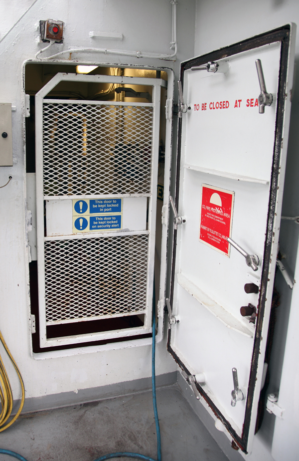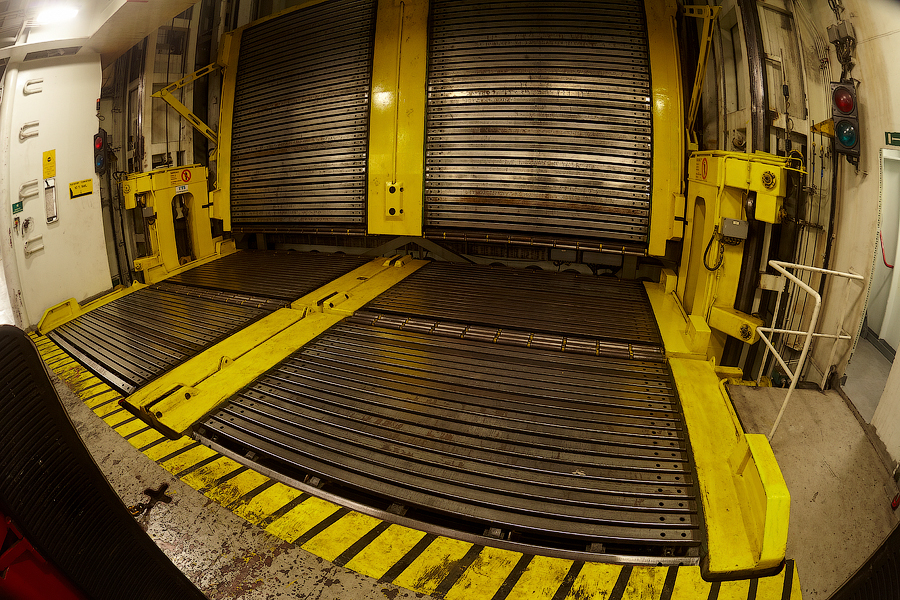 Естественно,перед выходом в море,грузовая аппарель наглухо закрывается. Изнутри судна,в закрытом состоянии она выглядит так: