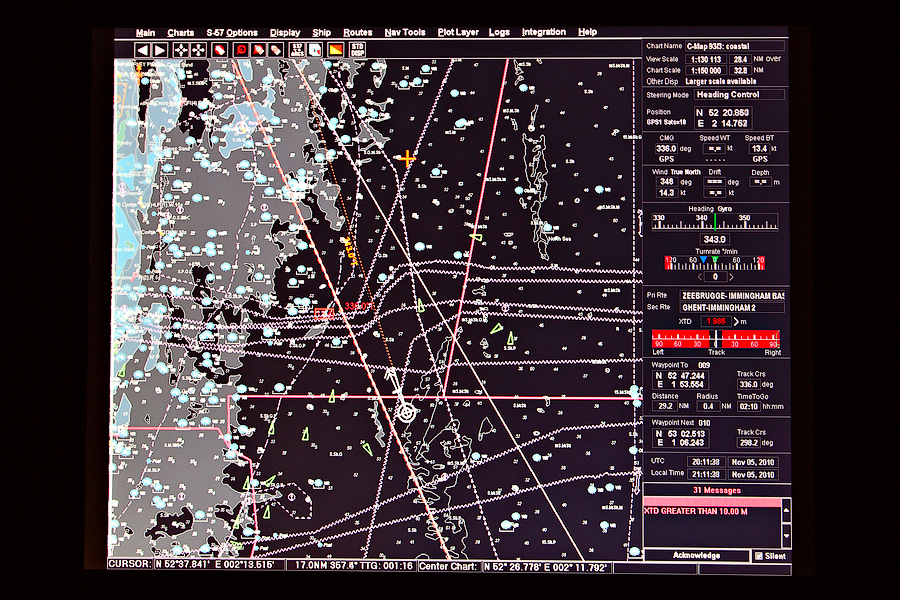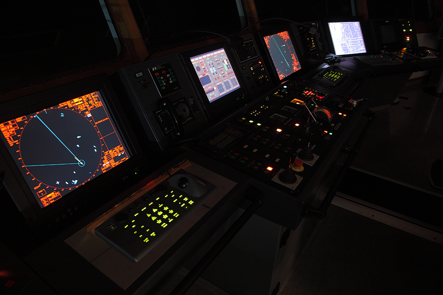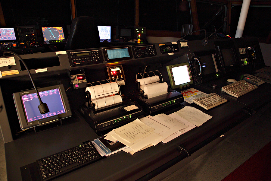 Основное навигационное оборудование во время стоянки судна в порту выключено. Но,даже в таком,спящем состоянии, Мостик живет своей жизнью,периодически пугая вас "храпом" проснувшегося внезапно прибора