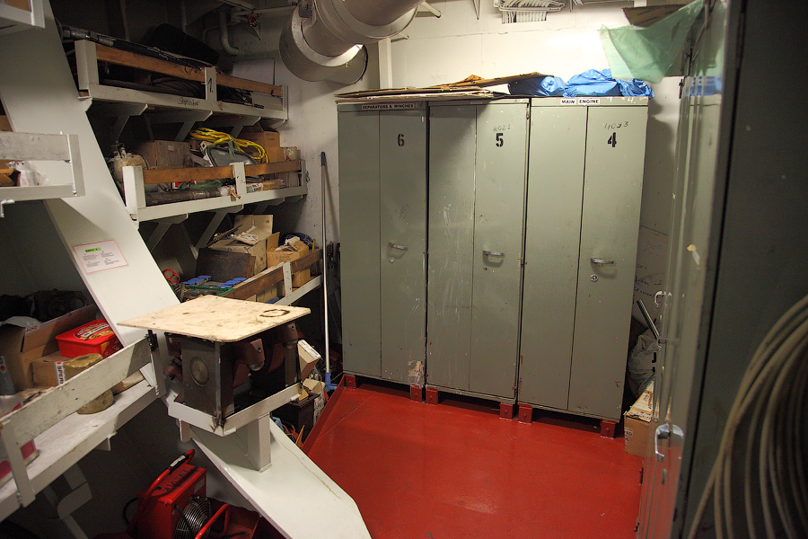 Ну а так выглядят грузовые помещения сейчас. Это твиндек.Да,совсем забыл вам сказать в начале своего повествования,что длина судна-129 метров,а грузоподъемность- 6600 тонн