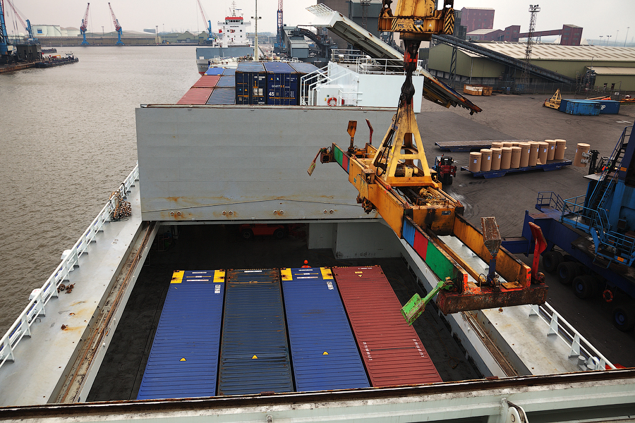 Помимо рулонов бумаги,наш славный пароходик перевозит еще груз в контейнерах: