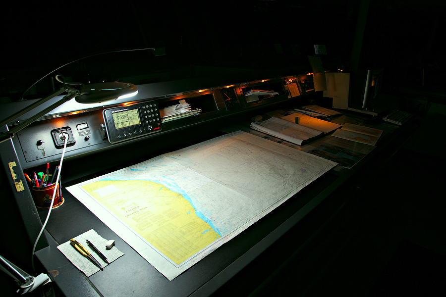 И сейчас,друзья,я вынужден буду признаться вам,что настоящее Темное Царство было не в Машинном отделении. На самом деле,темнее царства,чем Капитанский Мостик ночью в море,на судне нетTongue . И первое наше с вами посещение Капитанского Мостика произойдет именно ночью