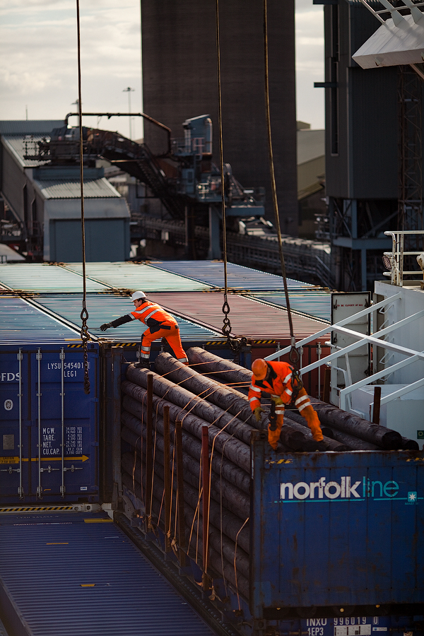 Во время ночных грузовых операций береговые работяги получают бонусную оплату. Потому и работают шустренько так: