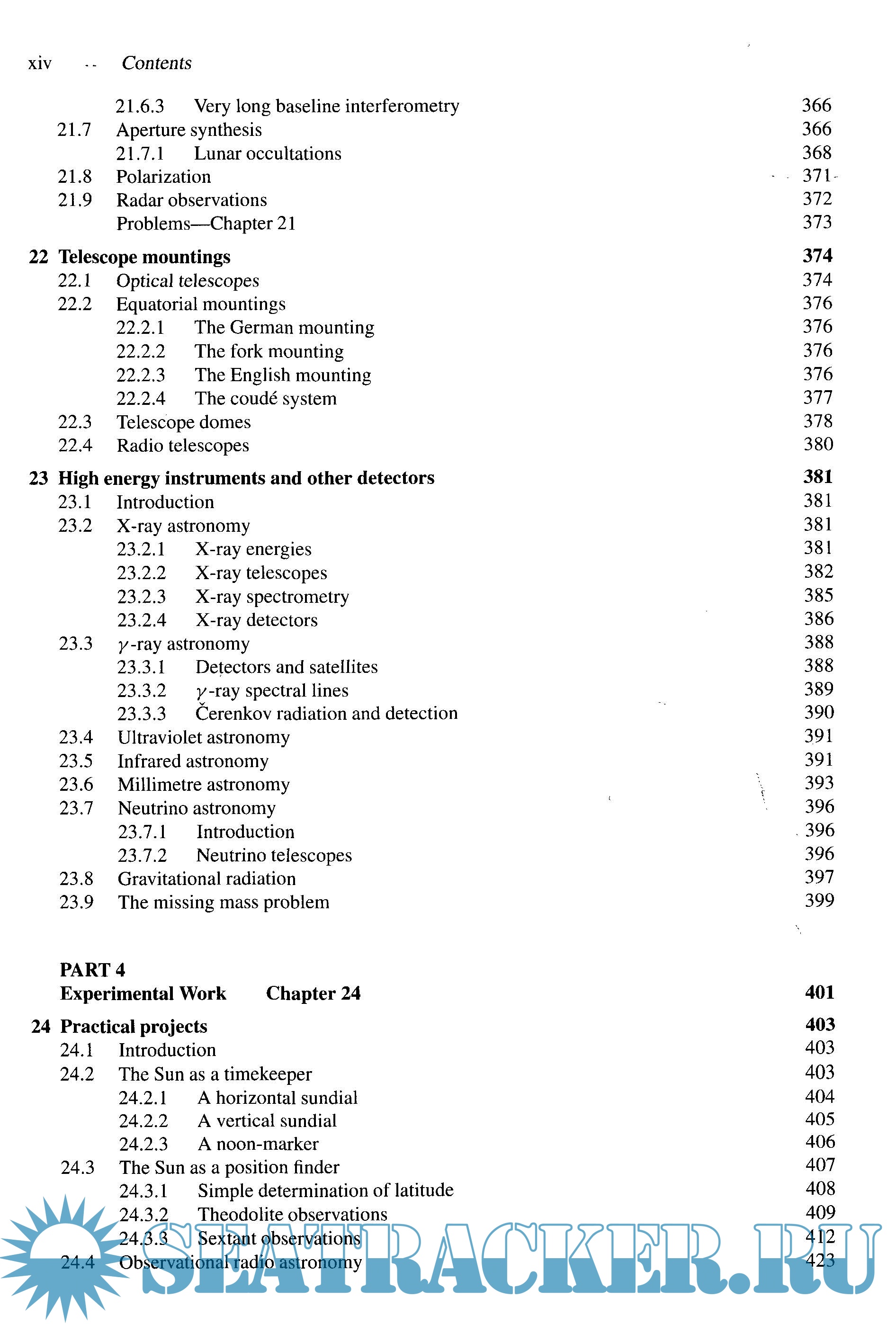 Year: 2003 Language: english Author: A.E. Roy and D. Clarke Genre: Handbook Publisher: Institute of Physics Publishing Edition: 4th ISBN: 978-0750309172 Format: PDF Quality: OCR without errors Pages count: 478 Description: Despite remarkable advances in astronomy, space research, and related technology since the first edition of this book was published, the philosophy of the prior editions has remained the same throughout. However, because of this progress, there is a need to update the information and present the new findings. In the fourth edition of Astronomy: Principles and Practice, much like the previous editions, the celebrated authors give a comprehensive and systematic treatment to the theories of astronomy. This reference furthers your study of astronomy by presenting the basic software and hardware, providing several straightforward mathematical tools, and discussing some simple physical processes that are either involved in the astronomer's tools of trade or concerned in the mechanisms associated with astronomical bodies. The first six chapters introduce the simple observations that can be made by the eye as well as discuss how such observations were interpreted by previous civilizations. The next several chapters examine the interpretation of positional measurements and the basic principles of celestial mechanics. The authors then explore radiation, optical telescopes, and radio and high-energy technologies. They conclude with practical projects and exercises. Features New to the Fourth Edition: - Revised values such as the obliquity of the ecliptic - Expanded material that is devoted to new astronomies and techniques such as optical data recording - A listing of Web sites that offer information on relevant astronomical events Revised and expanded, this edition continues to offer vital information about the fundamentals of astronomy. Astronomy: Principles and Practice, Fourth Edition satisfies the need of anyone who has a strong desire to understand the philosophy and applications of the science of astronomy.