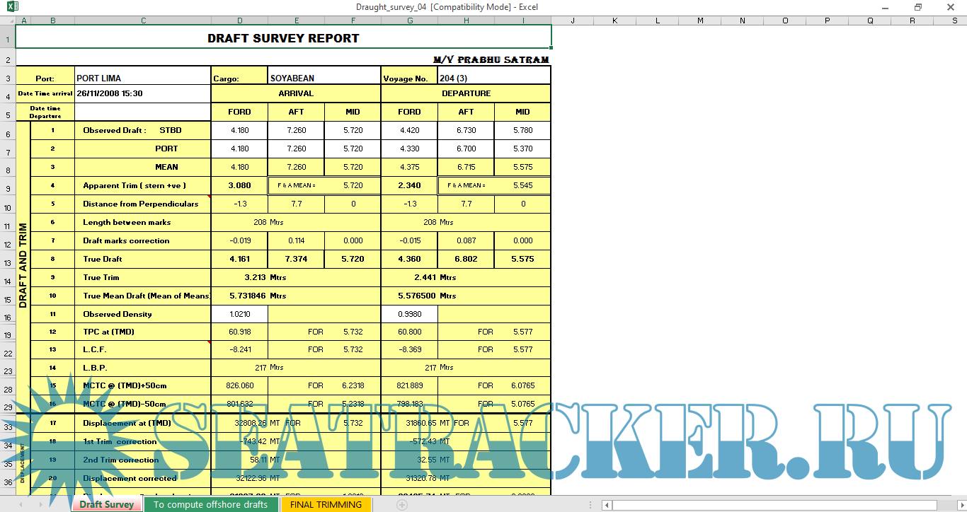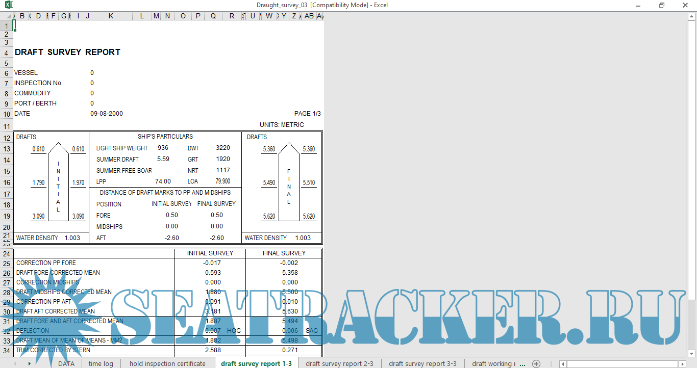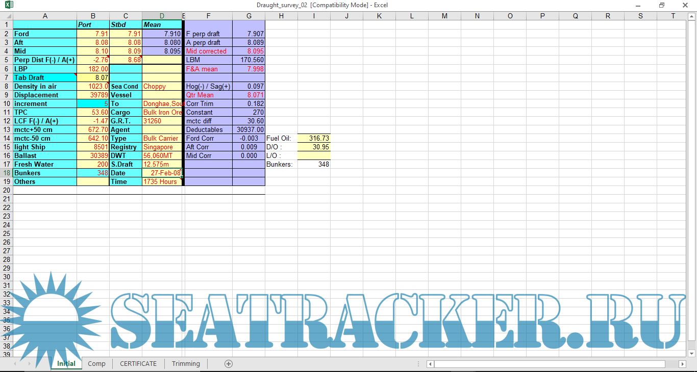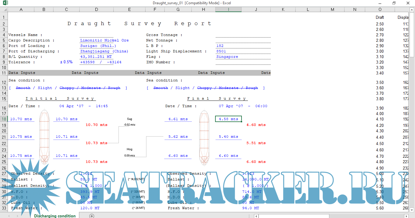 Excel программы для расчета Draft Survey [2017]