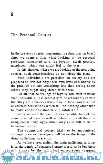 Year: 1992 Language: english Author: Kenneth Luck Genre: Reference book Publisher: Withrby & Co. Ltd. ISBN: 1 85609 005 1 Format: PDF Quality: OCR with errors Pages count: 95 Description: During the latter part of the twentieth century, illicit drugs have become the scourge of the civilised world threatening not only the health and life of the community but the very fabric of the society in which we live. Their use commands the attention of governments, politicians, businessmen, in fact, everyone down to the man and woman in the street. By the very nature of things, much of the trade in illicit drugs is carried on by sea with the commercial transport system used by the traffickers and the crews of these vessels can do much to help in eliminating the problem. This book has been written with the intention of bringing home to the mariner not only the problems but, much more important in the fight against the scourge, what he can do to help. No-one will suggest that the fight is going to be easy. When there is a high level of demand and a willingness to meet the demand, it is going to take something quite extraordinary to stop the traffic. But that is not to say that every individual, if only in a small way, cannot and should not, do something to help. Additional info: Some material has been taken from documents in the public sector but due acknowledgement must be made of the work of Dr. Bjorn Aune of the United States and, in particular, sincere thanks are due to him for permission to reproduce the maps and diagrams which accompany the text.