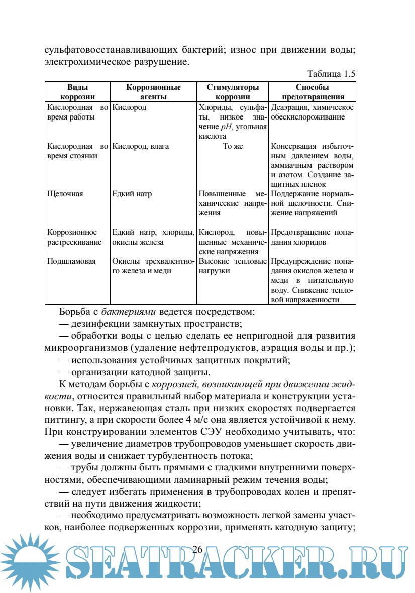 Описание: Рассмотрены основные физико-химические характеристики рабочих сред судового энергетического оборудования – воды, топлива и смазочных материалов. Даны характеристики их эксплуатационных свойств. Проанализированы методы и технологические схемы обработки рабочих сред в судовых условиях, критерии, по которым осуществляется выбор топлив и масел для судовых двигателей и вспомогательных котлов. Особое внимание уделено рассмотрению влияния качества воды и горюче-смазочных материалов на надежность и экономичность судовых энергетических установок.