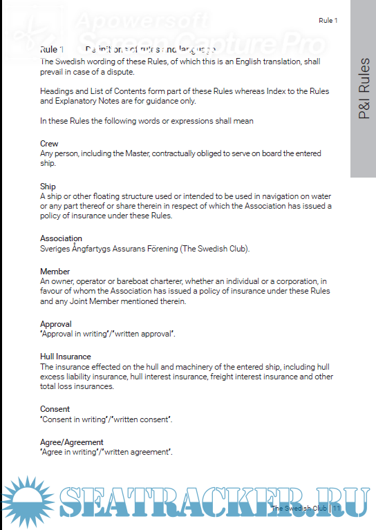 Rules for Protection & Indemnity Insurance 9