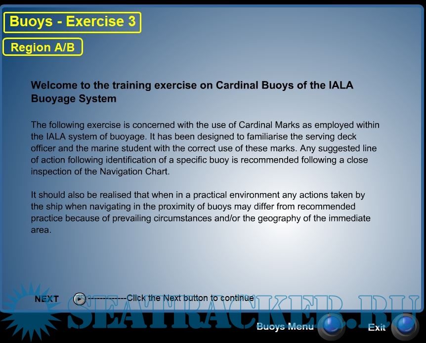 Year: 2005 Language: english Author: Farhan Saeed & D.J. House Format: Other Quality: Unknown Pages count: 50 Description: The purpose of this compact disc is meant to enhance the user in the practice of the Rules of the Road and the IALA Buoyage System. The use of the CD interactive method has been desinged as a training tool for serving merchant navy officer candidates preparing for seamanship qualifying examinations. Additional info: Format: Shockwave Flash Player