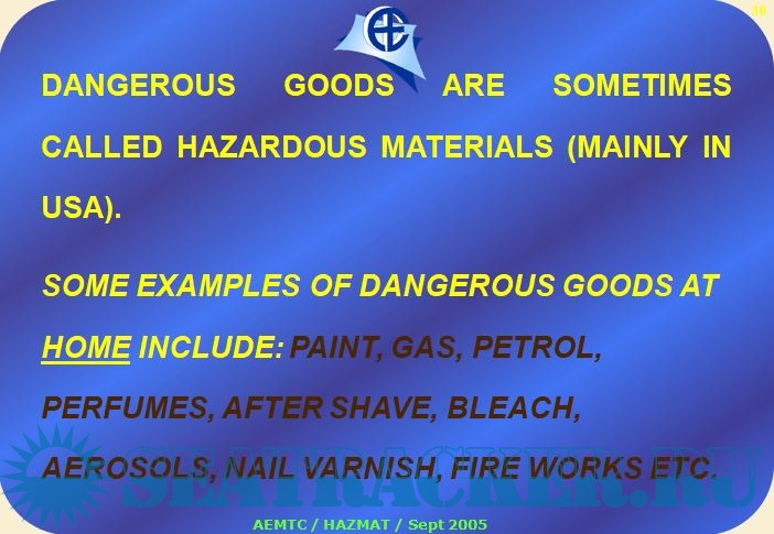 Year: 2005 Language: english Author: AEMTC Genre: Training courses Publisher: Anglo Eastern Maritime Training Centre, Mumbai Format: PPT Quality: eBook Pages count: 50 Description: The Purpose Of This Course Is To Provide Detail Training, To Seafarers In Safe Carriage Of Dangerous Goods And Harmful Substances By Sea.