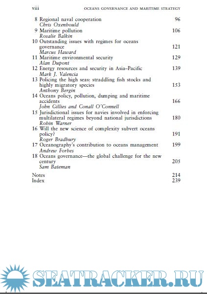 Year: 2000 Language: english Author: Edited by David Wilson & Dick Sherwood Publisher: Allen & Unwin ISBN: 1 86508 184 1 Format: PDF Quality: eBook Pages count: 267 Description: Books such as this one go some way towards fulfilling such aims. However, we must ensure that we do not simply ‘preach to the converted’ and that we get the message out into the wider public forum. Certainly, I believe there is evidence of a growing awareness and appreciation of the importance of the oceans to the global economy. This book will do much to further consideration of the important issues of oceans governance and maritime strategy and as such I recommend it to all those with an interest in the oceans and maritime strategy.