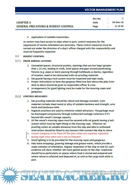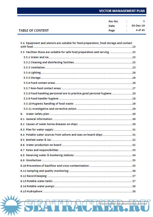 Description: The primary aim of this vector management plan is to present the public health significance of ships in terms of disease and to highlight the importance of applying appropriate control measures.