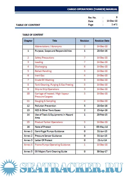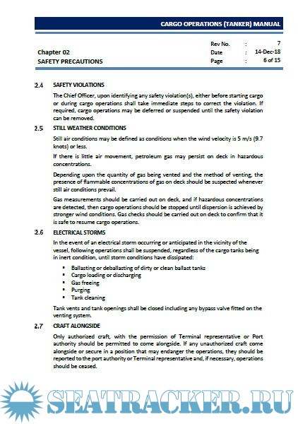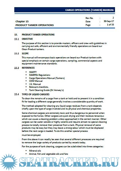 Description: The purpose of this manual is to guide the Master, Officers and crew to load, carry and unload cargoes in a safe and efficient manner. At every stage of the operation of the vessel due consideration must be given to all the rules and regulations of the Classification society, IMO, OCIMF, SOLAS and MARPOL requirements as well as must conform with the various codes and regulations with respect to cargo carriage.