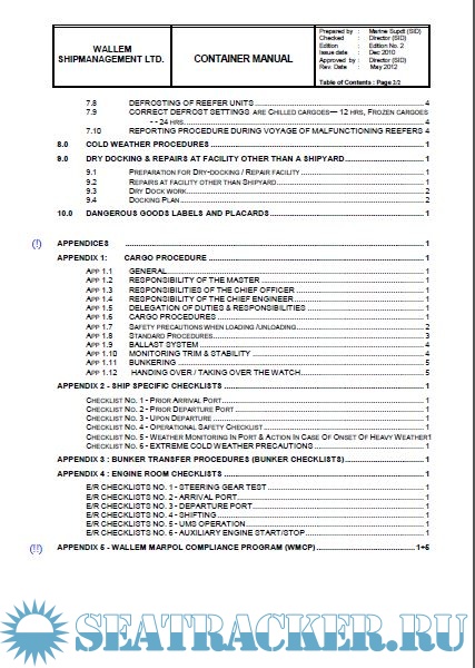 Description: This Manual details the policies and measures adopted by the Company for safe and efficient operation of Container ships under its management and control.