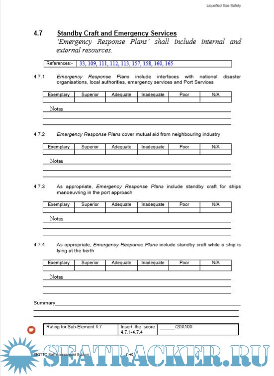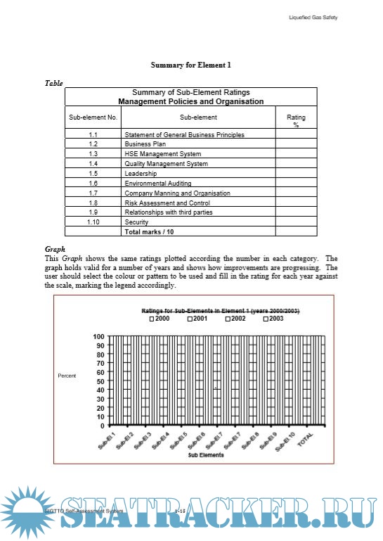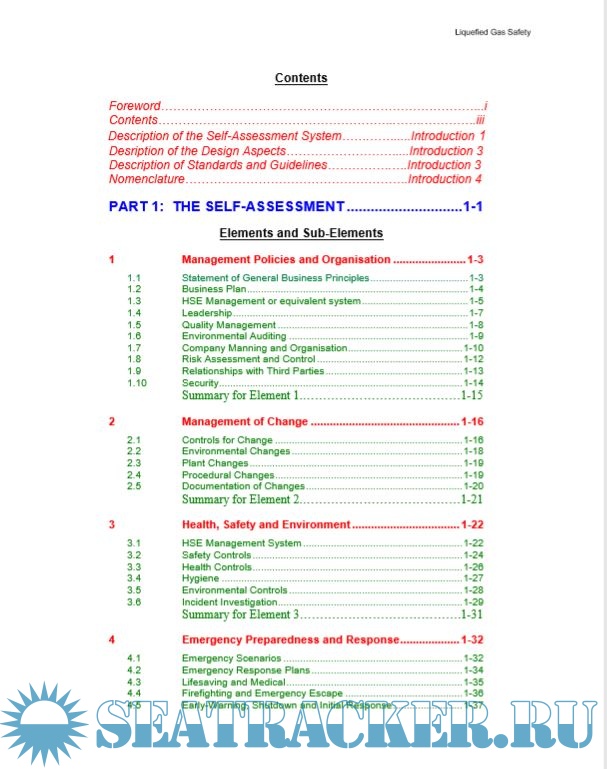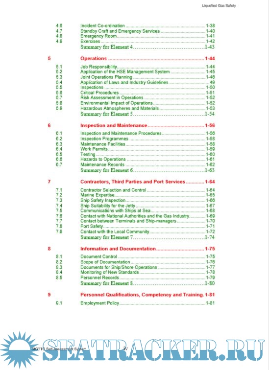 The Guide is designed not as a work of reference but as an operational tool, to be used as part of the management process in gas shipping and marine terminals handling liquefied gas cargoes. Hence, it provides operators with a common framework, endorsed by all members of the Society of International Gas Tankers and Terminal Operators, for the systematic review of operational management at their facilities. Used regularly, as part of established management processes, it will provide assurance for all concerned parties of the integrity of operations and be indicative of a ship, shipping company or terminal being operated to the highest international standards.