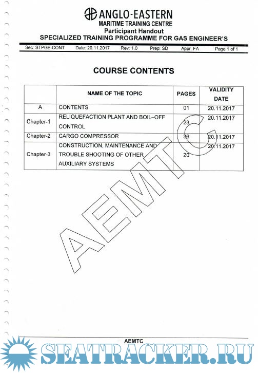 Description: Handout of A Three Day Course for Gas Engineers held at Anglo Eastern Maritime Training Centre.
