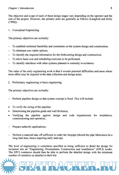 Year: 2005 Language: english Author: Yong Bai & Qiang Bai Publisher: Elsevier ISBN: 0-080-4456-67 Format: PDF Quality: OCR with errors Pages count: 841 Description: This book is a wonderful text for the uninitiated student in the offshore adventure of subsea pipelines and risers filled with all the severe weather and complex soils conditions. Containing decades of expert information and insight into this most challenging environmental arena, many years of 'on the job' experience can be gained by simply reading this text.