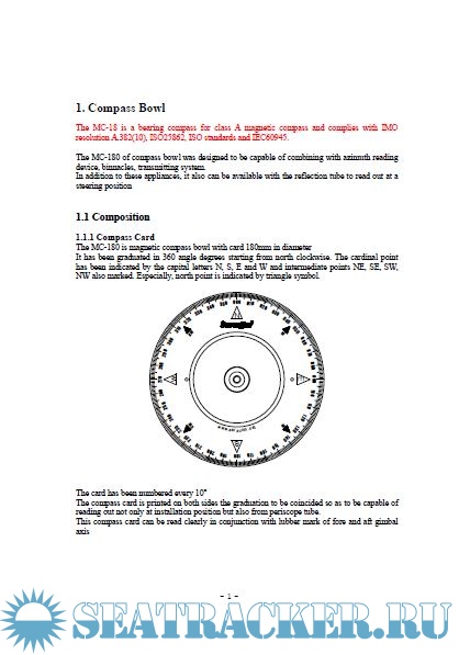 Year: 20xx Language: english Author: Saracom Genre: Manual Publisher: Saracom Edition: Version 2 Format: PDF Quality: eBook Pages count: 39 Description: User Manual for Saracom Magentic Compass MC-18. The MC-18 is a bearing compass for class A magnetic compass and complies with IMO resolution A.382(10), ISO25862, ISO standards and IEC60945.