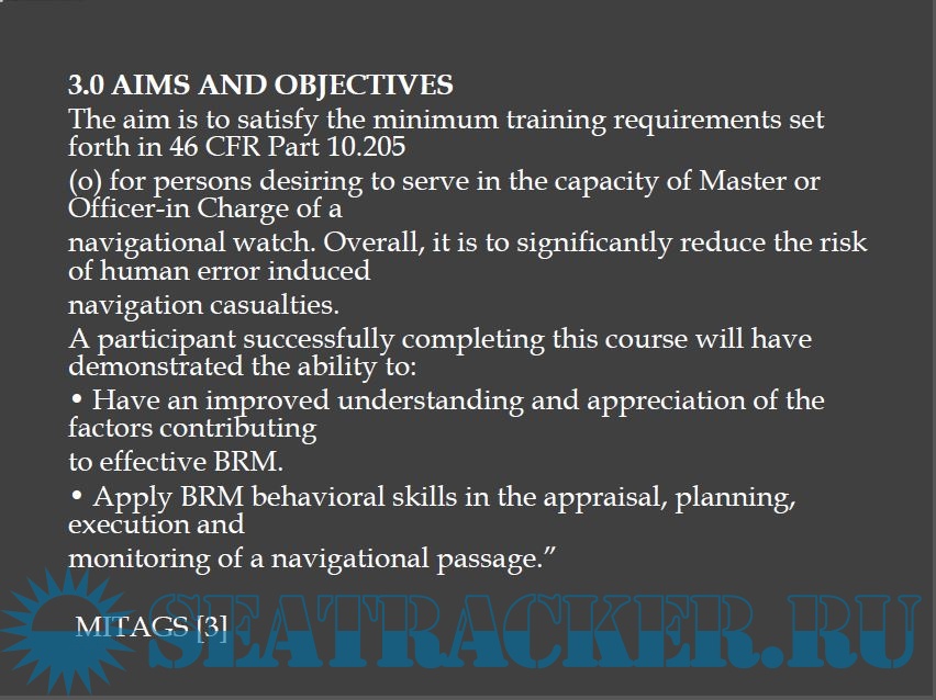 Year: 2xxx Language: english Author: Jeffrey Spillane Genre: Guide Publisher: SUNY Maritime College, USA Format: PDF Quality: Photos of pages Pages count: 43 Description: The purpose of this paper is to highlight the need to address specific weaknesses when teaching a course by highlighting a common mistake I (and several other instructors agree) have been seeing in entry level officers/officer candidates (little to no experience) enrolled in “Bridge Resource Management” (BRM) courses. It emphasises the need to take the student’s previous experience and comfort levels into account when designing and teaching a course. While I discuss BRM in detail, this paper could be a model for the method of evaluating the Objectives and balancing the student’s weakness to “fine tune” a course to provide the greatest benefit for the student.