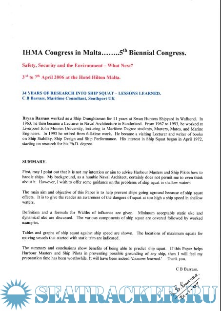Year: 2007 Language: english Author: Dr. C.B.Barrass Genre: Guide Format: PDF Quality: Scanned pages Pages count: 51 Description: The main aim and objective of this research paper is to help prevent ships going aground because of ship squat effects. It is to give the reader an awareness of the dangers of squat at too high a ship speed in shallow waters.