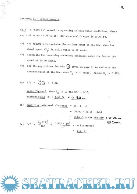 Definition and Formulas for widths of influence are given. Minimum acceptable static ukc and dynamical ukc are discussed. The various components of ship squat are covered followed by worked examples. Tables and graphs of ship squat against ship speed are shown. The location of maximum sqauts for moving vessels that started with static trim are indicated. The summary and conclusions show benefits of being able to preict ship squat.