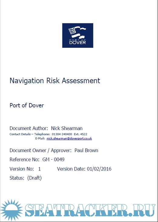 Description: The Port of Dover Navigational Risk Assessment document has been compiled to formally identify all the marine hazards both commercial and leisure within the jurisdiction of the Port. Further to this in order to support the Safety Management System (Port Marine Safety Code), a full assessment of the hazards has been carried out against a standard of acceptability. Where appropriate, risk reducing control measures have been put in place to eliminate or reduce the risk to as low as reasonably practicable (ALARP). In order to fully examine the hazards and risks, external stakeholders with specific skills and knowledge have been included in the process.